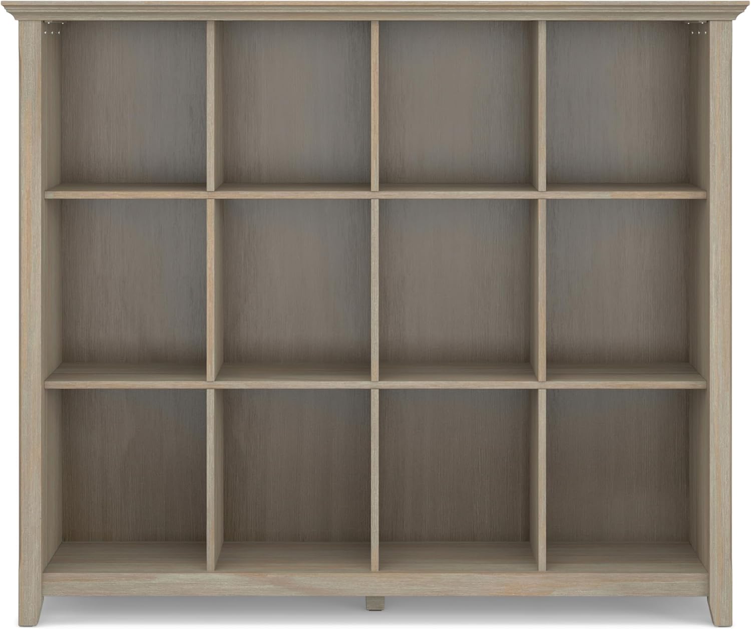 SIMPLIHOME Acadian Bookcase - 57 inch Tall 12-Cube Solid Wood Storage Display Unit in Distressed Grey, Transitional Cube Organizer for Living Room or Office with Fixed Shelves and Tapered Legs