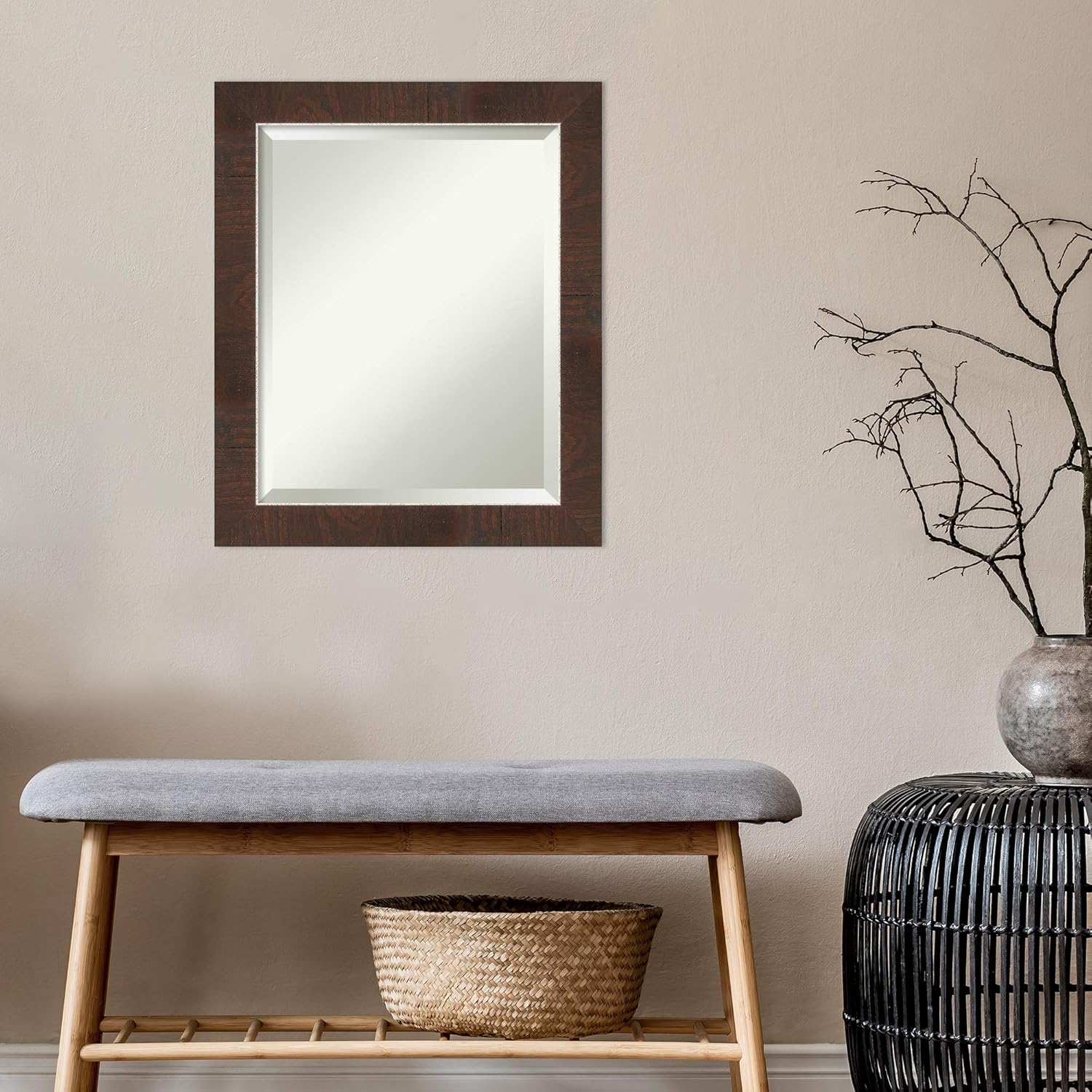 Amanti Art Brown Bathroom Mirror for Over Sink, 23x19 Wildwood Brown Narrow Rectangle Vanity Mirror, Small Rustic Farmhouse Frame, Hangs Horizonally and Vertically, Bathroom Wall Decor, Beveled Edge