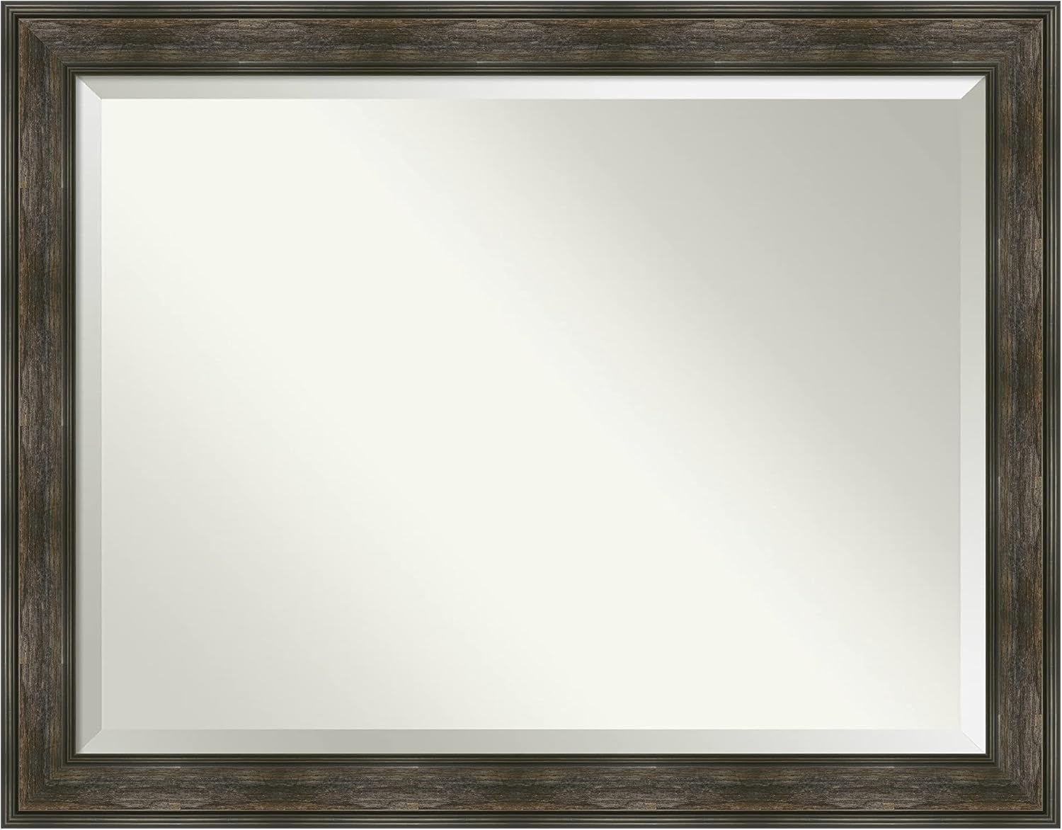 Amanti Art Brown Bathroom Mirror for Over Sink, 36x46 Rail Rustic Char Rectangle Vanity Mirror, X-Large Rustic Farmhouse Frame, Hangs Horizonally and Vertically, Bathroom Wall Decor, Beveled Edge