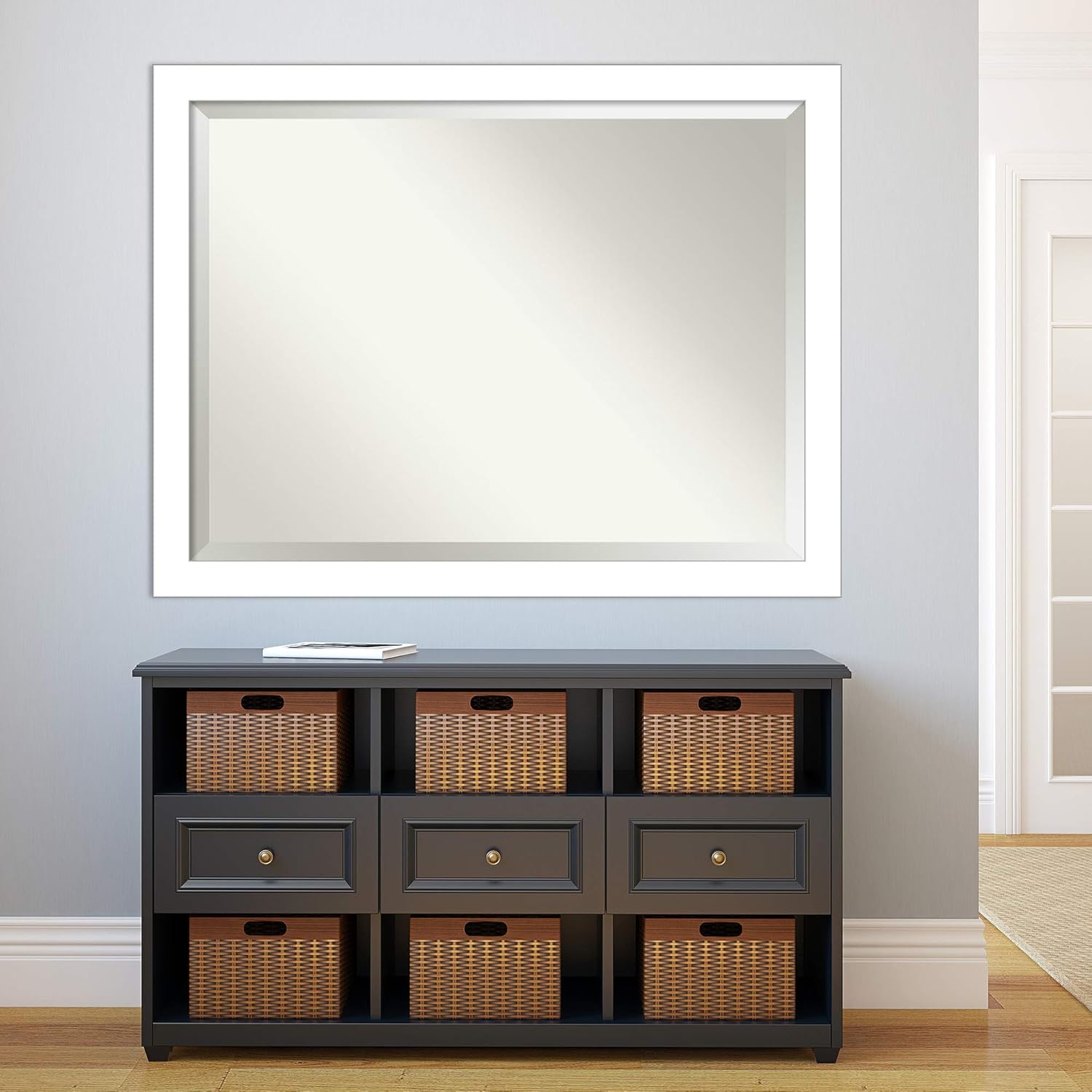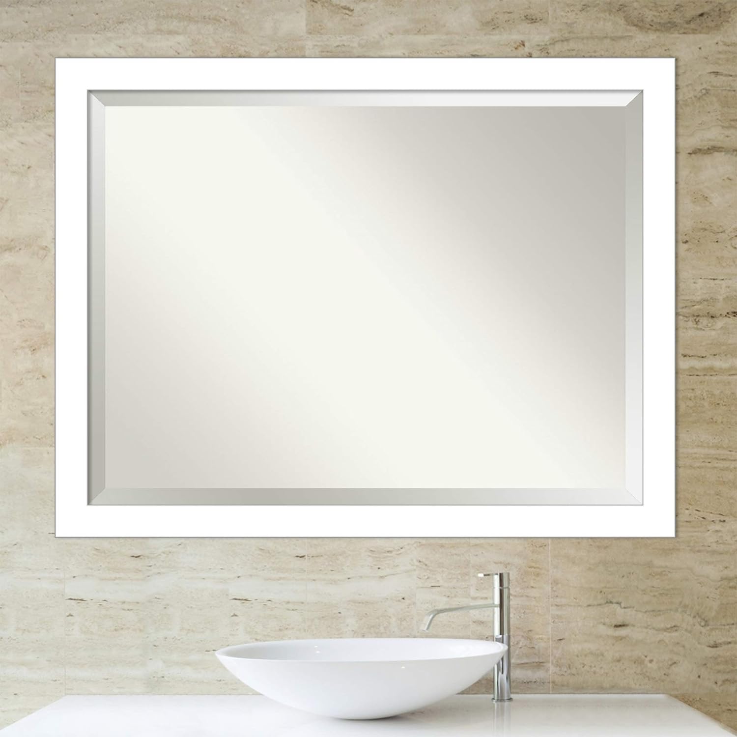 Amanti Art White Bathroom Mirror for Over Sink, 34x44 Wedge White Rectangle Vanity Mirror, X-Large Modern Contemporary Frame, Hangs Horizonally and Vertically, Bathroom Wall Decor, Beveled Edge
