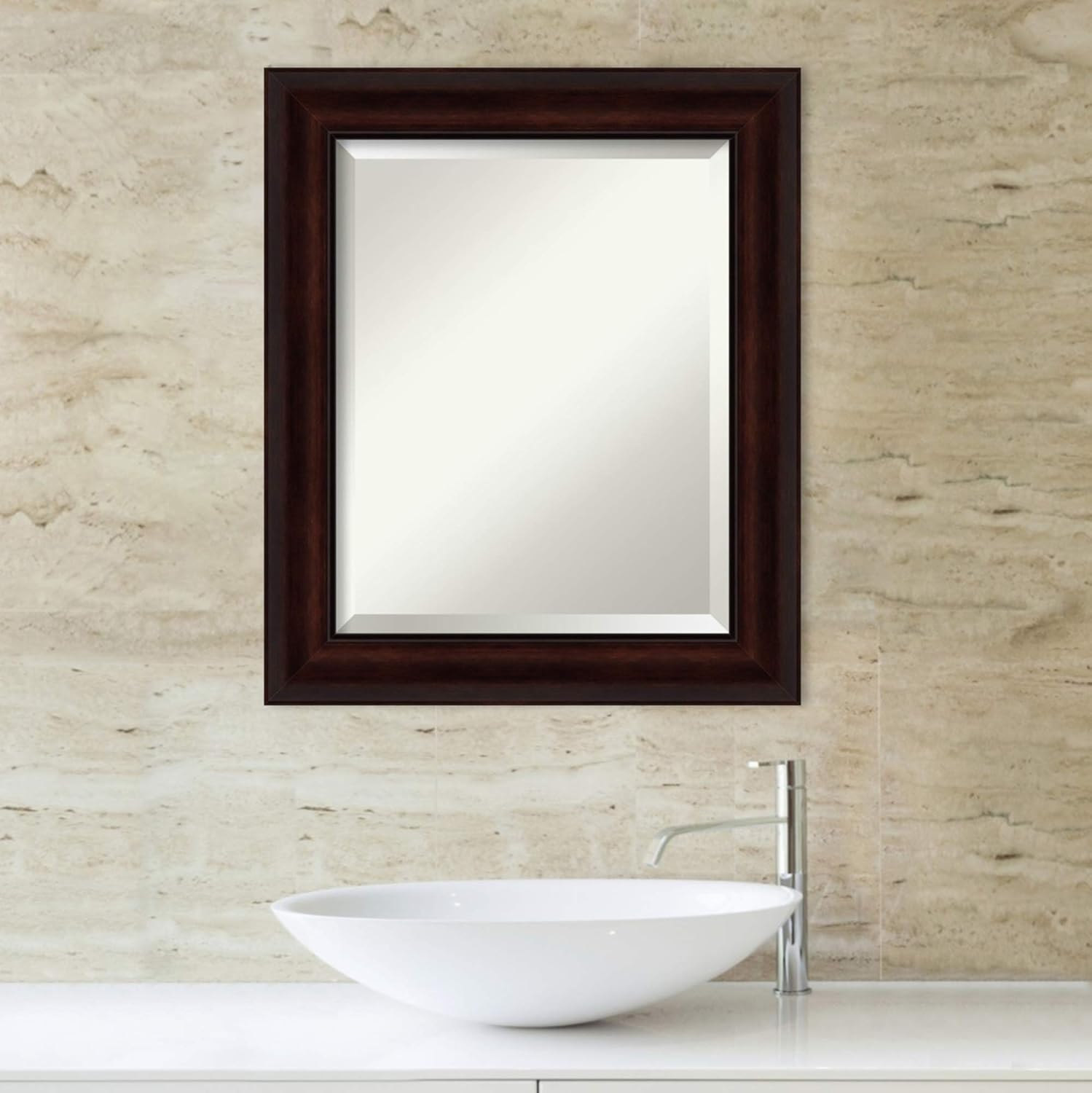 Amanti Art Brown Bathroom Mirror for Over Sink, 25x21 Coffee Bean Brown Rectangle Vanity Mirror, Small Casual Frame, Hangs Horizonally and Vertically, Bathroom Wall Decor, Beveled Edge from WI, USA