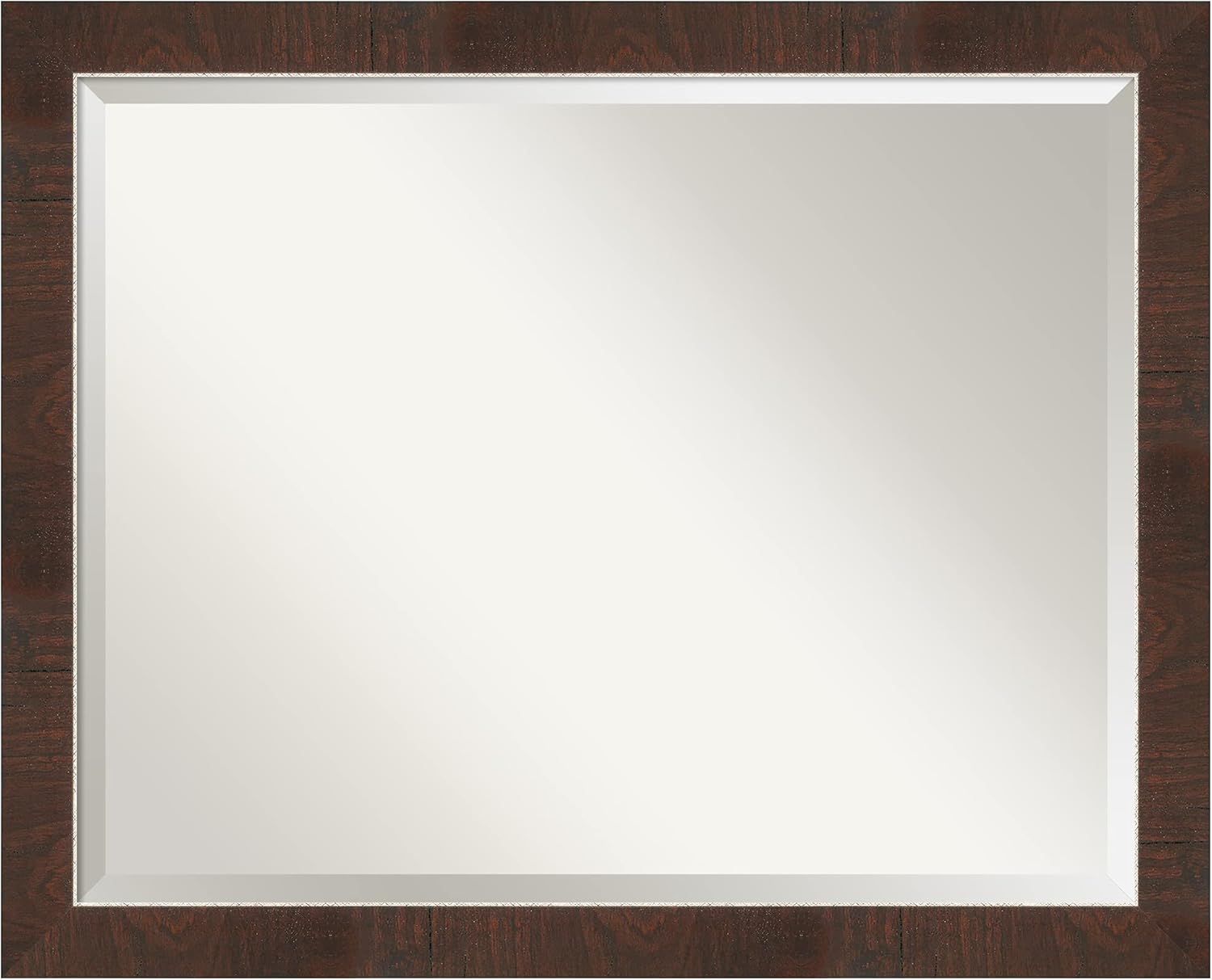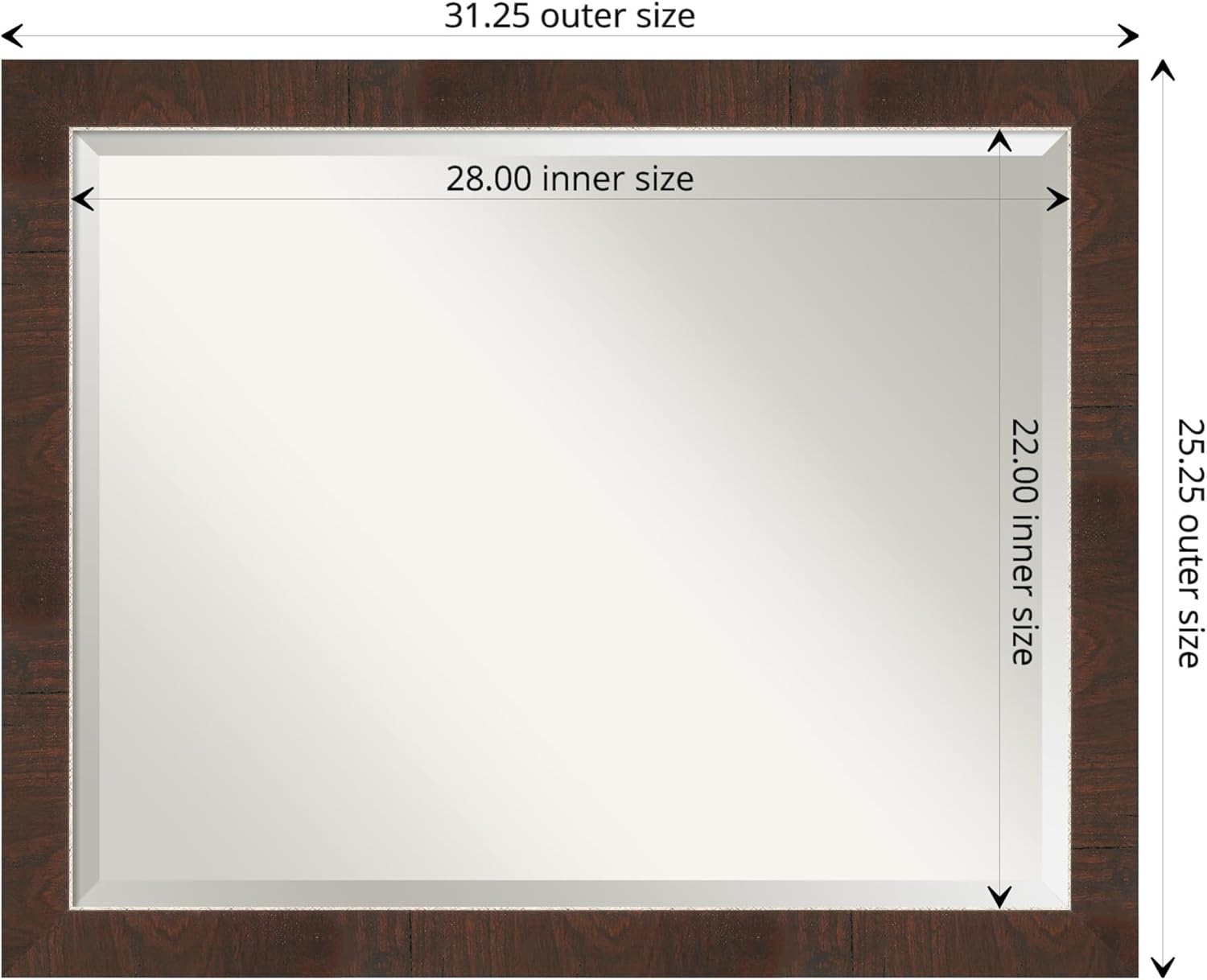 Amanti Art Brown Bathroom Mirror for Over Sink, 25x31 Wildwood Brown Narrow Rectangle Vanity Mirror, Large Rustic Farmhouse Frame, Hangs Horizonally and Vertically, Bathroom Wall Decor, Beveled Edge