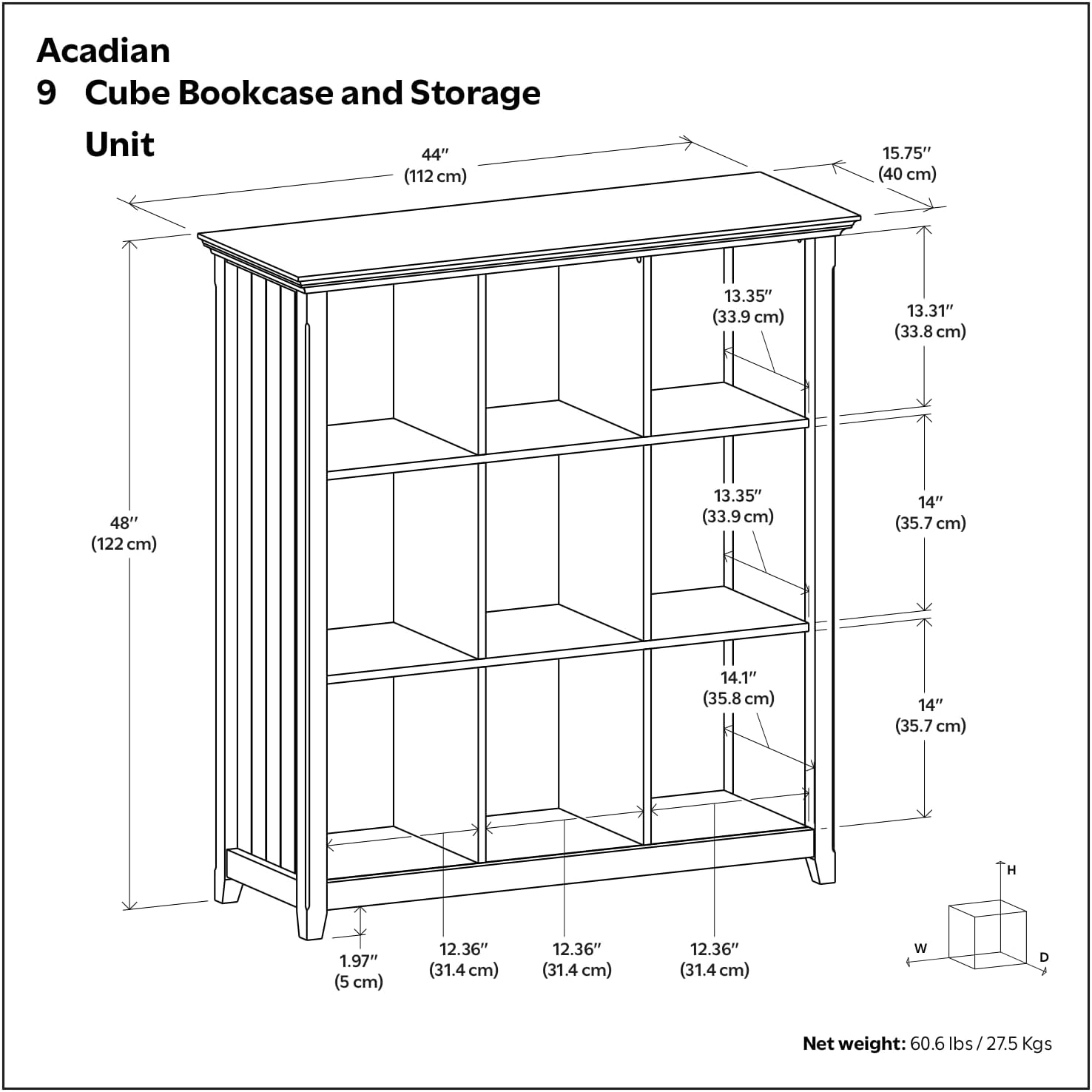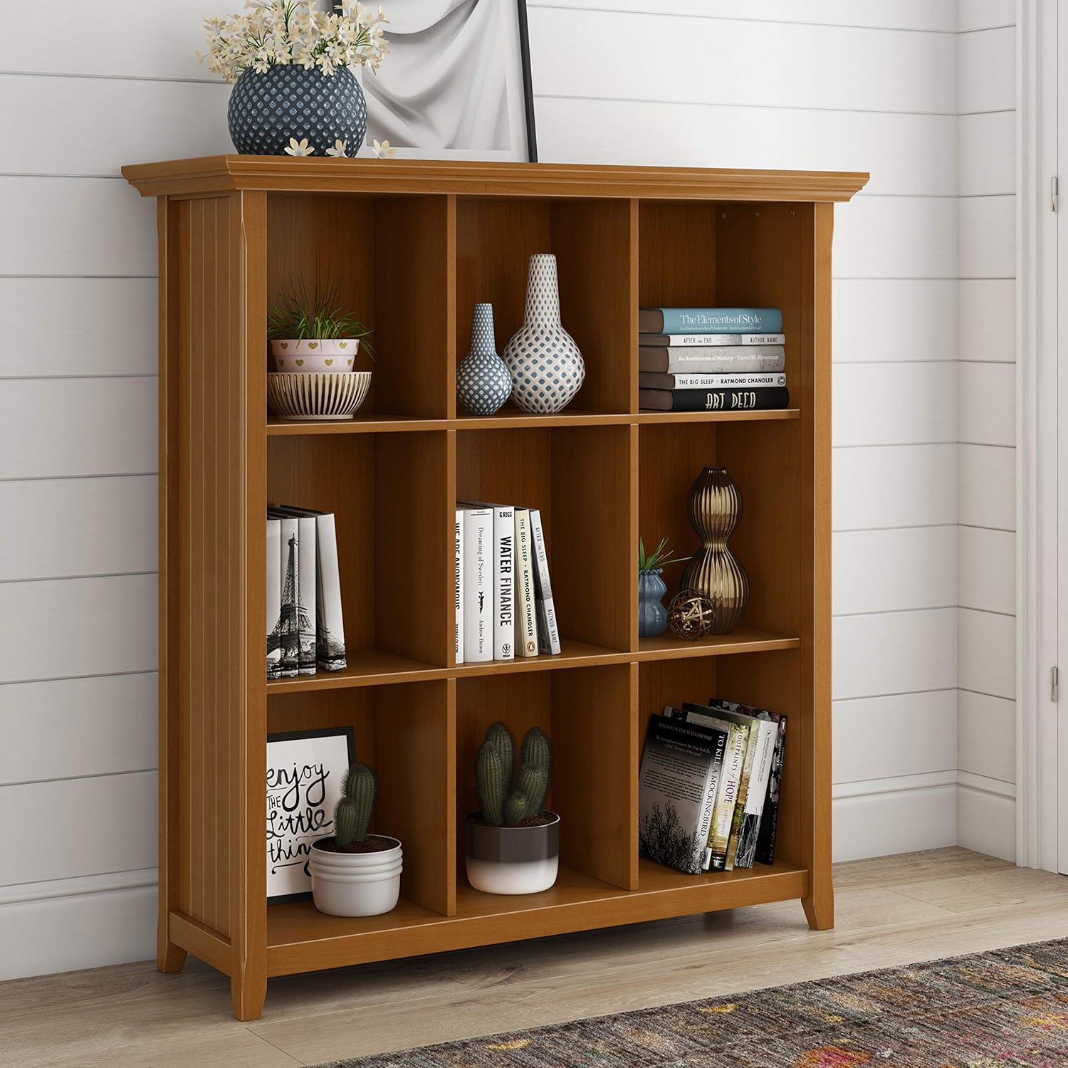 SIMPLIHOME Acadian Bookcase - 44 inch Tall 9-Cube Solid Wood Cube Organizer in Light Golden Brown, Transitional Bookcase Storage for Living Room, Study or Office with Fixed Shelves and Tapered Legs