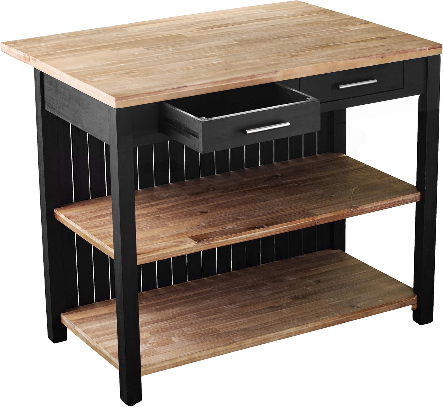 SEI Furniture Berinsly Expandable Freestanding Kitchen Island, Black, Natural
