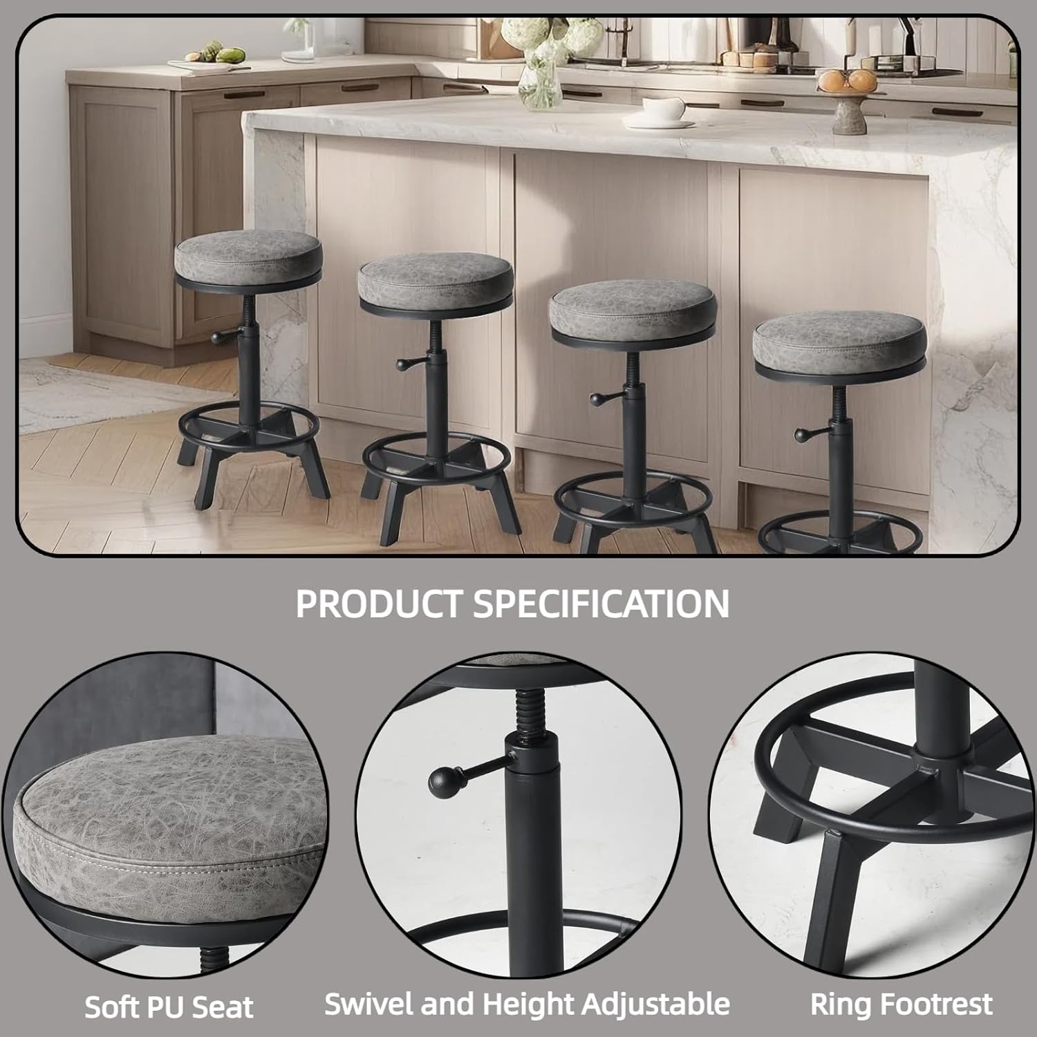- ✔360 Degree Swivel. The swivel PU seat can be twist in 360 degree. You can adjust height from standard height (18inch) to counter height (25inch). It can meet your needs, matches with your kitchen island, bar table and etc.