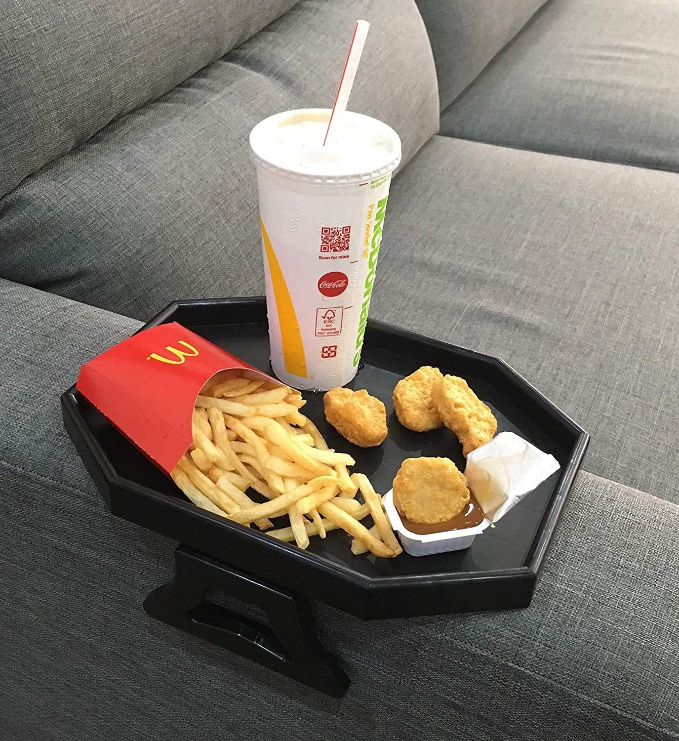 - Universal Fit for Most Sofas - Designed to clip securely onto round or square armrests (Maximum clips open width 9 inch), this tray transforms your couch into a functional table—no tools needed