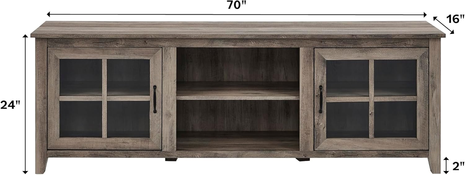 Walker Edison Portsmouth Classic 2 Glass Door TV Stand for TVs up to 80 Inches, 70 Inch, Birch