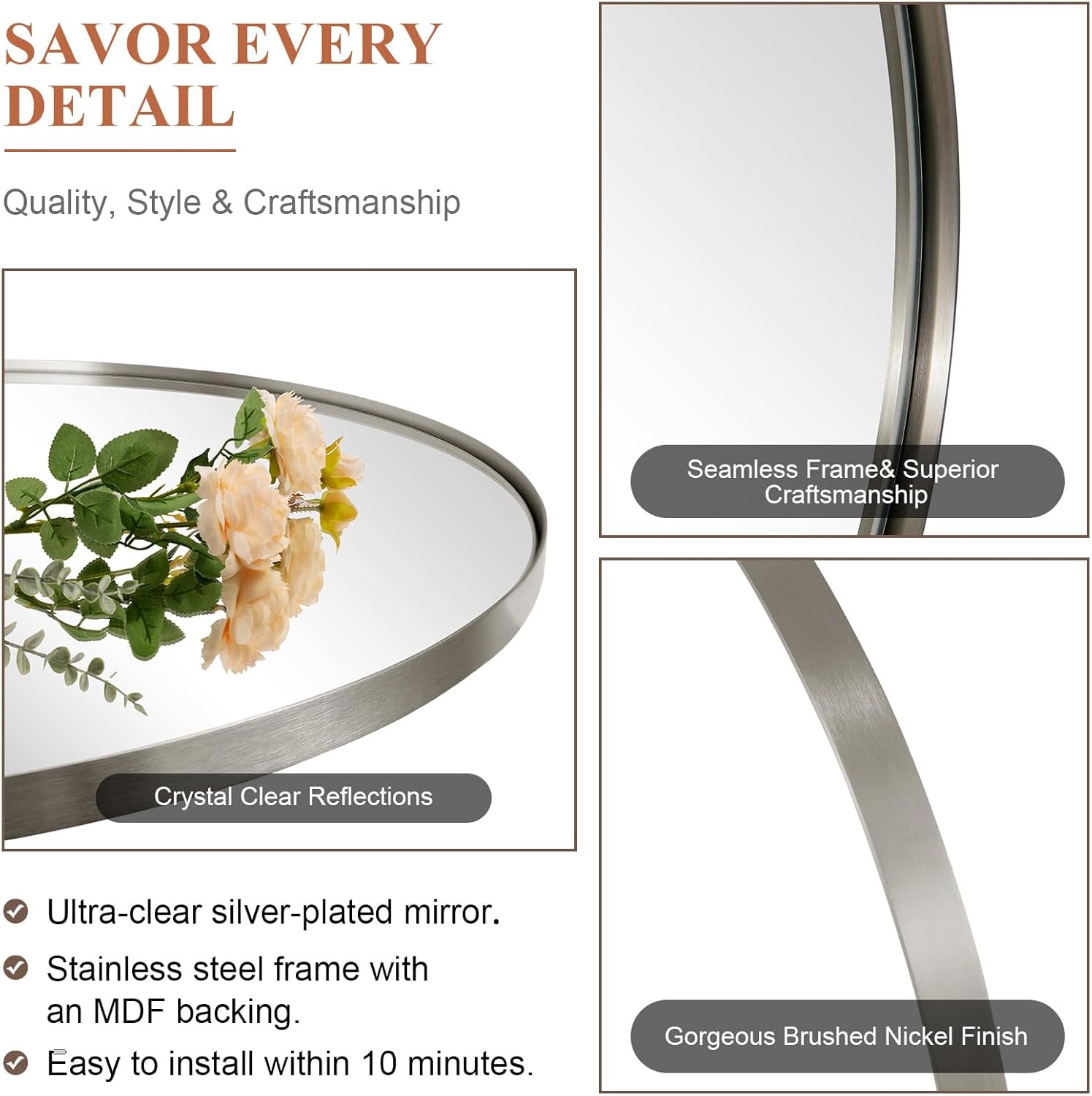 - Beautiful in Design: A slim, modern-inspired stainless steel frame embraces the oval mirror; its trendy brushed nickel finish adds style; display it in your bathroom; effortlessly decorate your walls while bringing light and space into the room