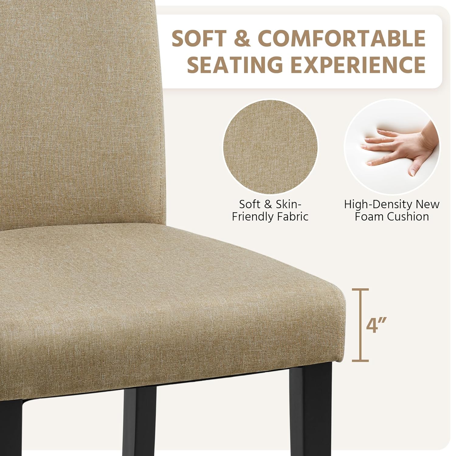 Yaheetech Dining Chairs Set of 4 Fabric Parson Upholstered Kitchen Chairs with Padded Seat and Solid Wood Legs for Dining Room/Restaurant, Armless Design, Khaki