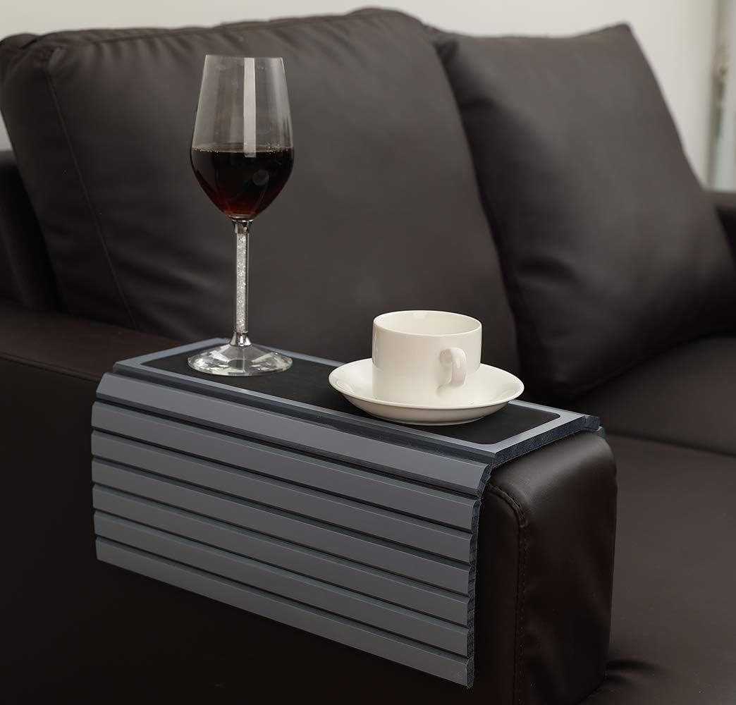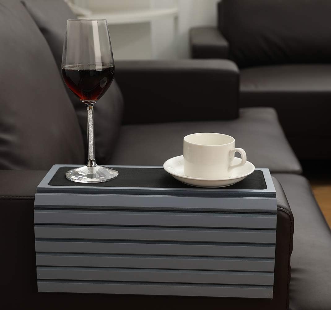 GEHE Sofa Arm Tray Table for Couch Flexible/Foldable Sofa Tray Couch arm Table Perfect for Drinks Snacks Remote Control or Phone Great arm Tray for Couch armrest (Grey)