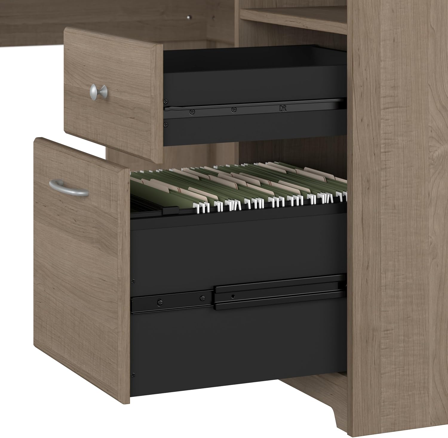 Bush Furniture Cabot L Shaped Desk with Hutch | Corner Desk with Storage for Home Office in Ash Gray | 60W L Shaped Computer Desk