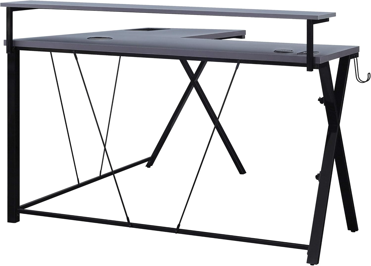 OSP Home Furnishings Checkpoint Battlestation L Shaped Gaming Desk with RGB LED Lights, Black