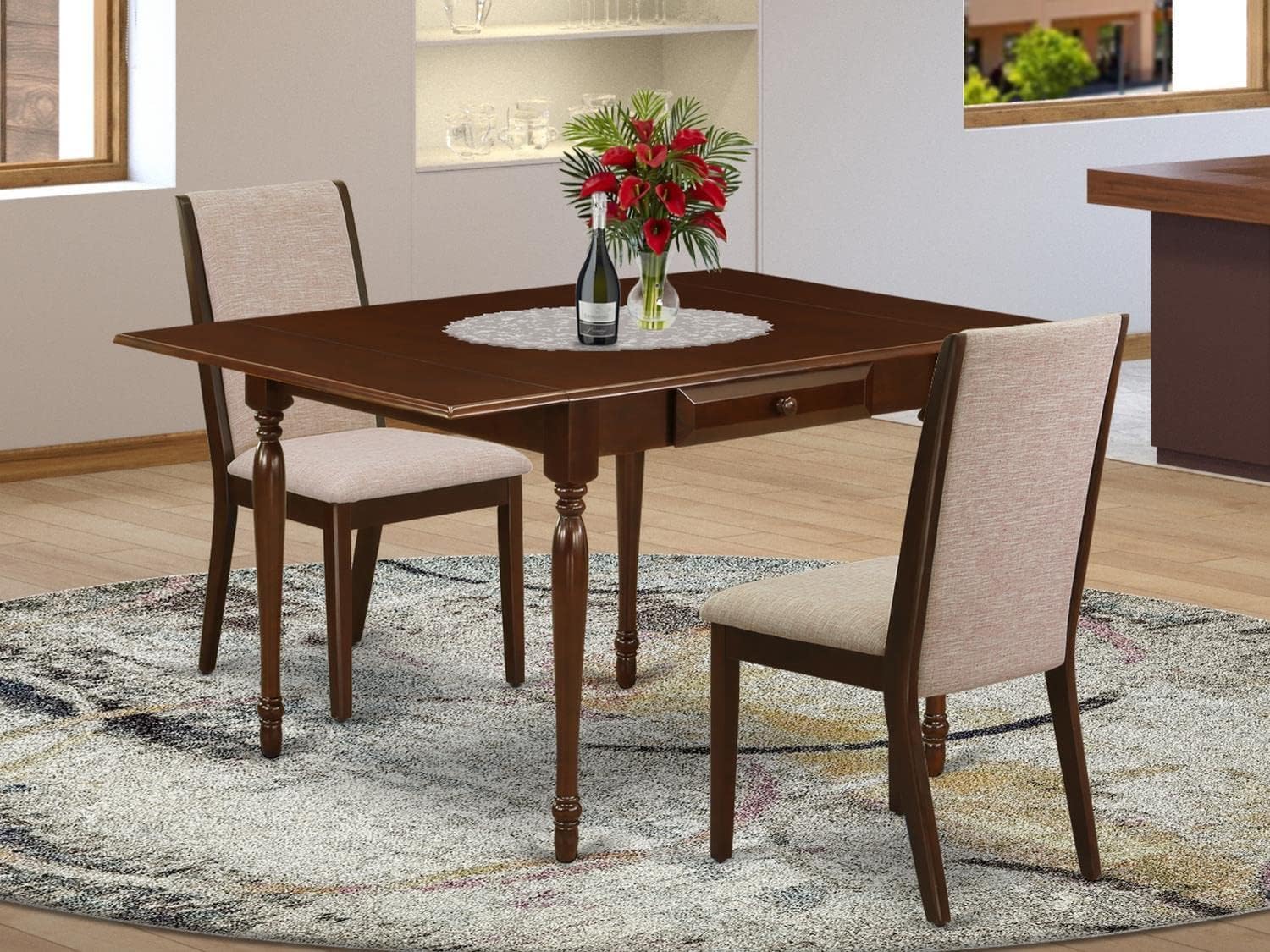 East West Furniture MZLA3-MAH-04 3 Piece Dinette Set for Small Spaces Contains a Rectangle Dining Table with Dropleaf and 2 Light Tan Linen Fabric Parson Chairs, 36x54 Inch, Mahogany