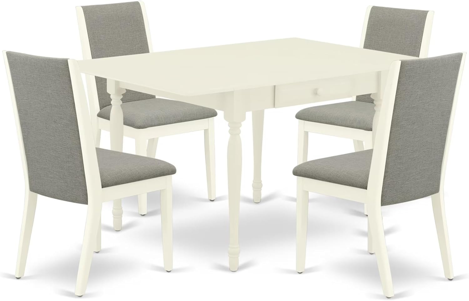 East West Furniture MZLA5-LWH-06 5 Piece Dining Table Set for 4 Includes a Rectangle Kitchen Table with Dropleaf and 4 Shitake Linen Fabric Parson Dining Chairs, 36x54 Inch, Linen White