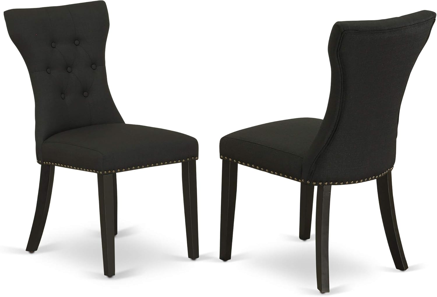 - DINING TABLE SET FINISH: The kitchen table set has a rich Black finish that can adapt to any home decor. This modern kitchen table and parsons dining chairs set has a luxurious and vintage appearance. The kitchen parson chairs feature a high, stylish button-tufted backrest in Black-colored Linen Fabric and stunning wooden legs in Black color. The wooden table has a mid-century top and attractive wooden legs finished in Black.