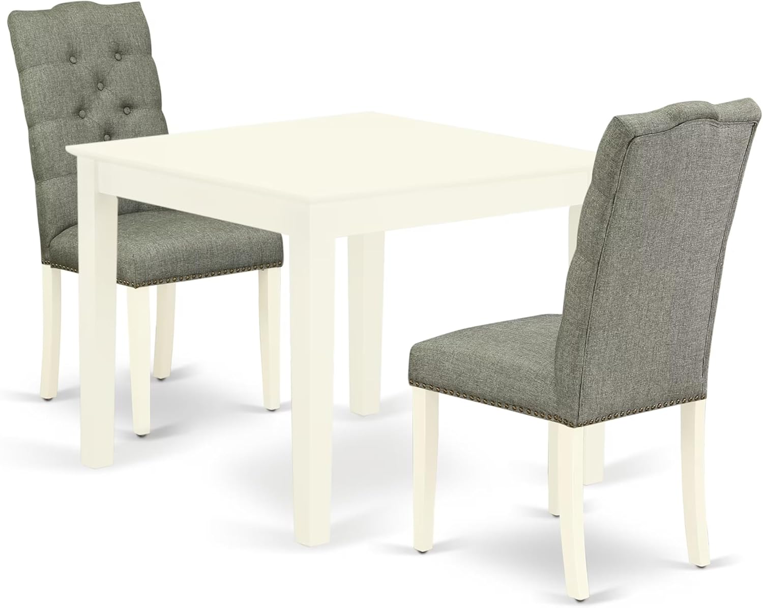 East West Furniture OXEL3-LWH-07 3 Piece Kitchen Table Set for Small Spaces Contains a Square Dining Room Table and 2 Gray Linen Fabric Upholstered Chairs, 36x36 Inch, Linen White