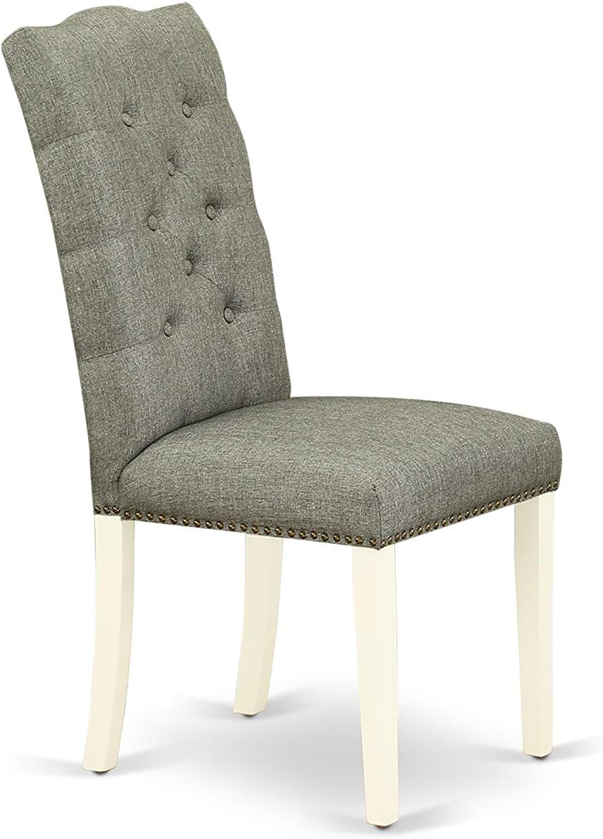 - MID CENTURY DINING SET FINISH: The dining room table set is completed with a luxurious Linen White finish, making it suitable for any style of decor. The kitchen table and parson chairs boast a stylish and retro appearance, with the chairs featuring a high button-tufted back covered in Smoke color fabric and attractive wooden legs in Linen White. The tabletop of the wooden dining table, along with its lovely legs, also features an elegant Linen White finish.