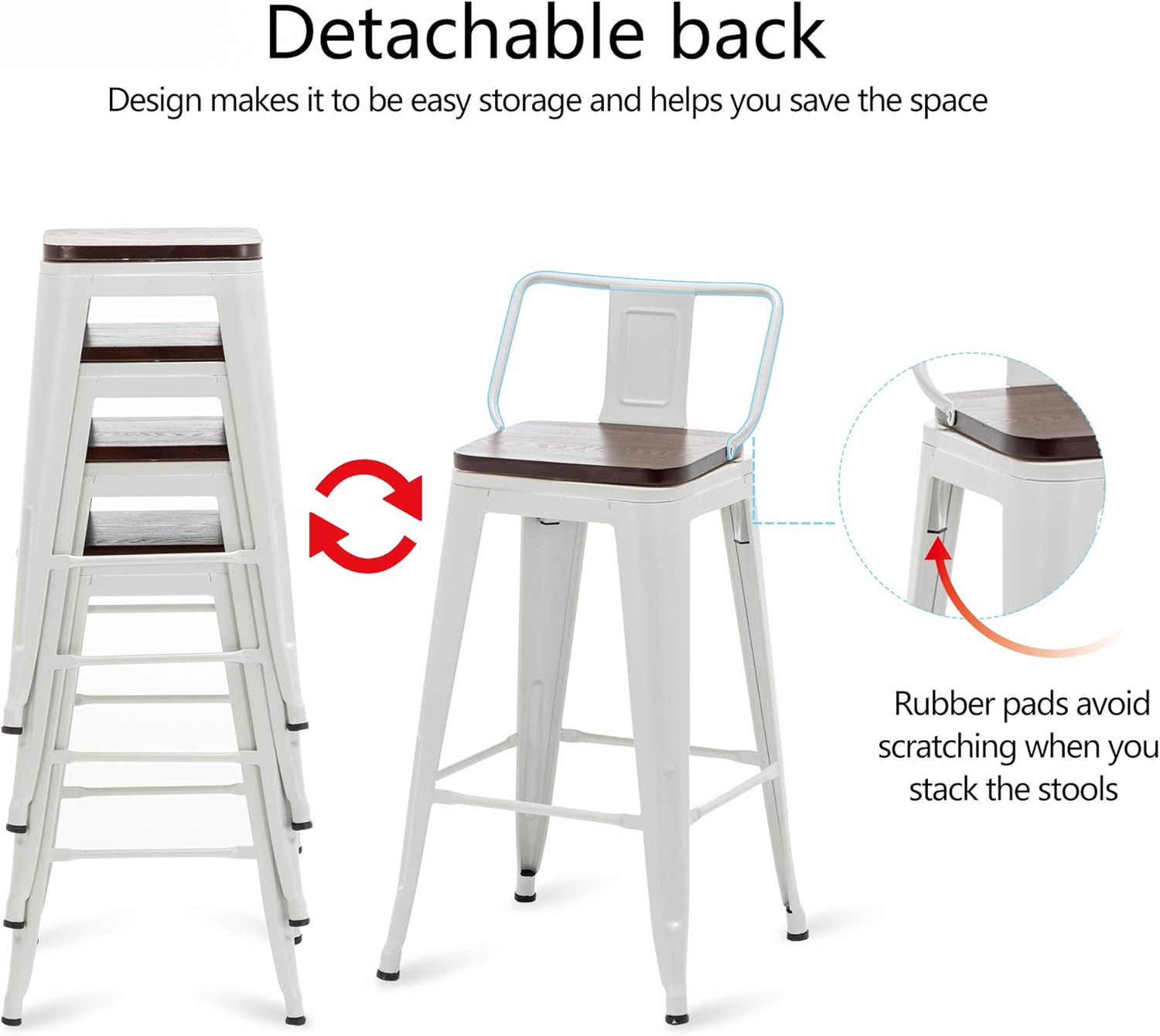 24 Inch Swivel Bar Stools Set of 4 with Backs Counter Height Industrial Metal Barstools Island Bar Chairs for Home Kitchen Dining Room (Swivel 24 inch, White Wooden)