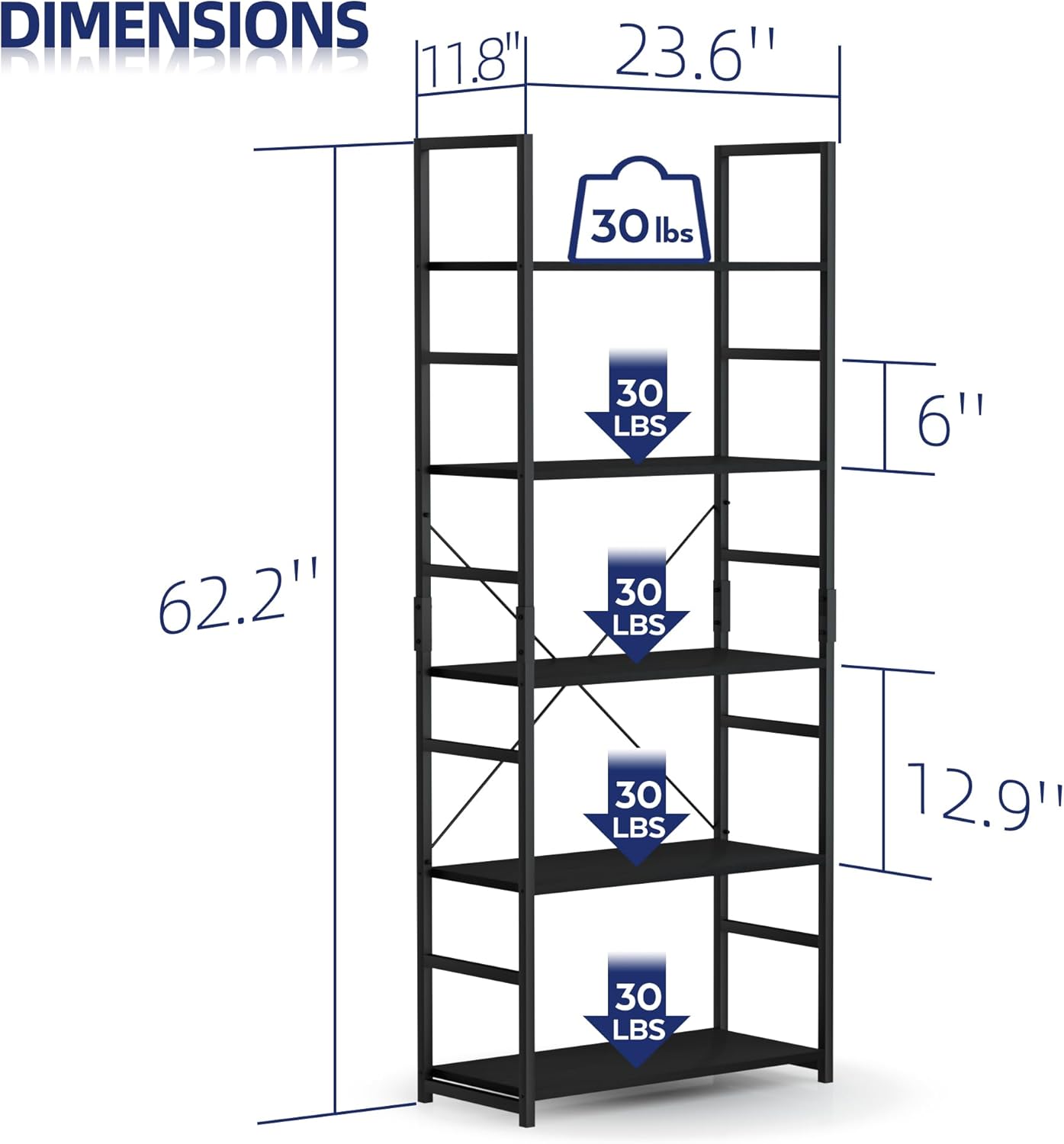 - Product Dimensions : 11.8"D x 23.6"W x 62.2"H