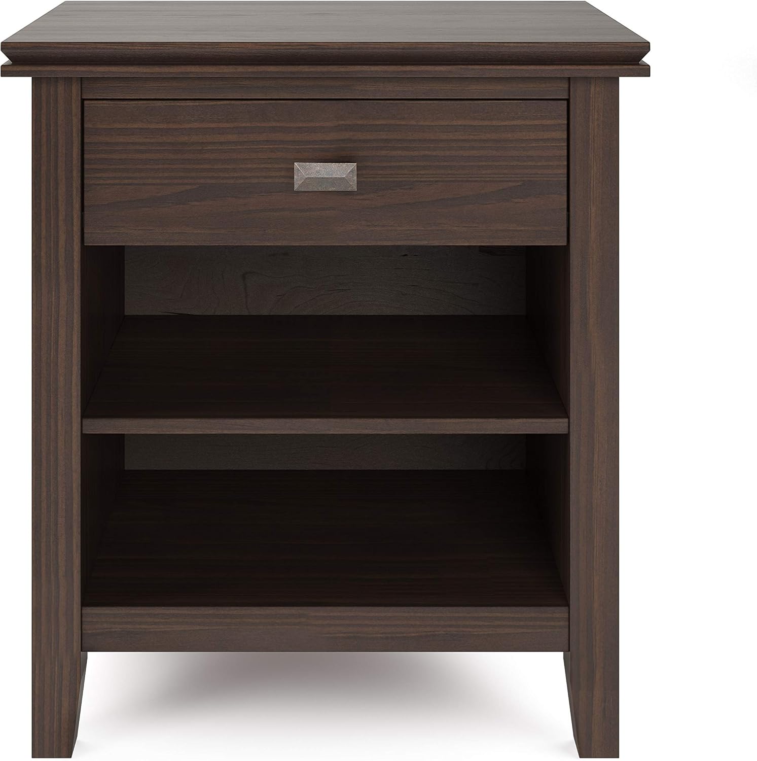 SIMPLIHOME Artisan SOLID WOOD 24 inch Wide Transitional Bedside Nightstand Table in Warm Walnut Brown for the Living Room and Bedroom