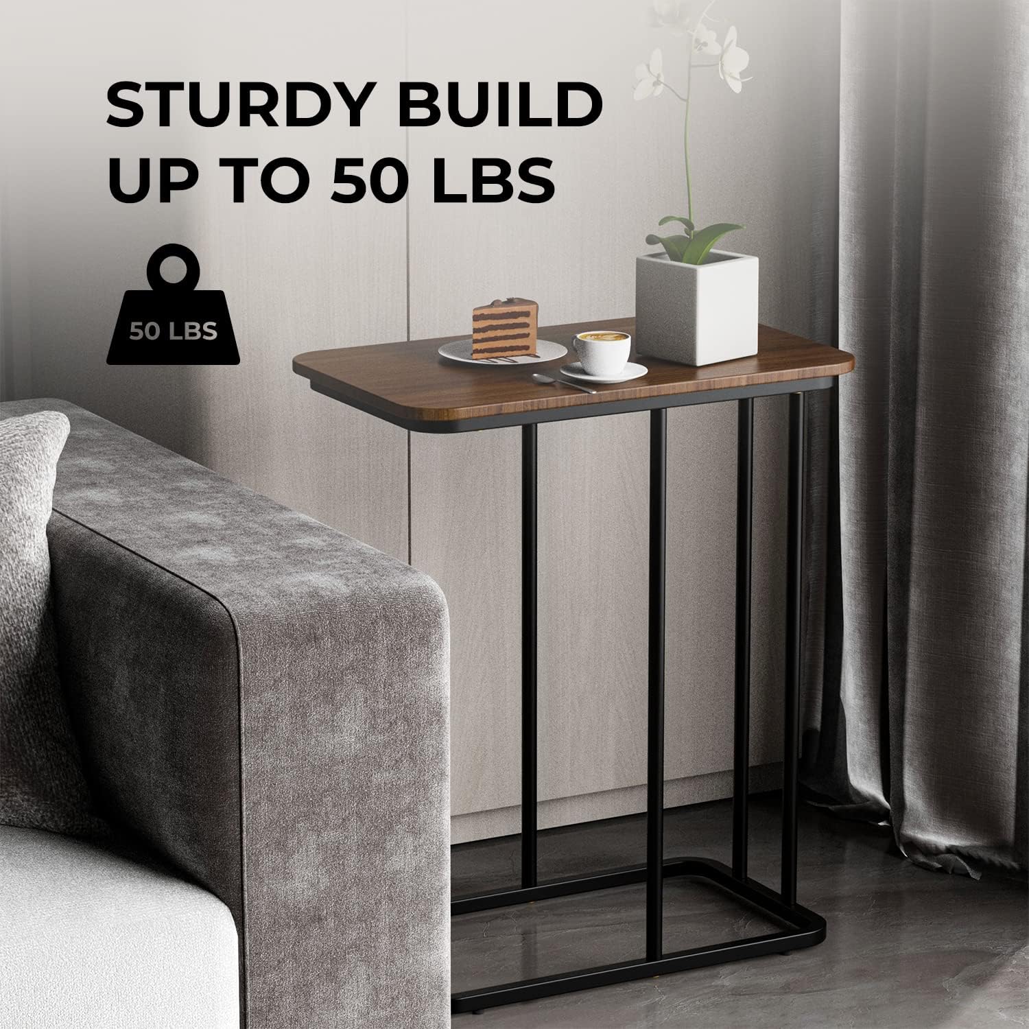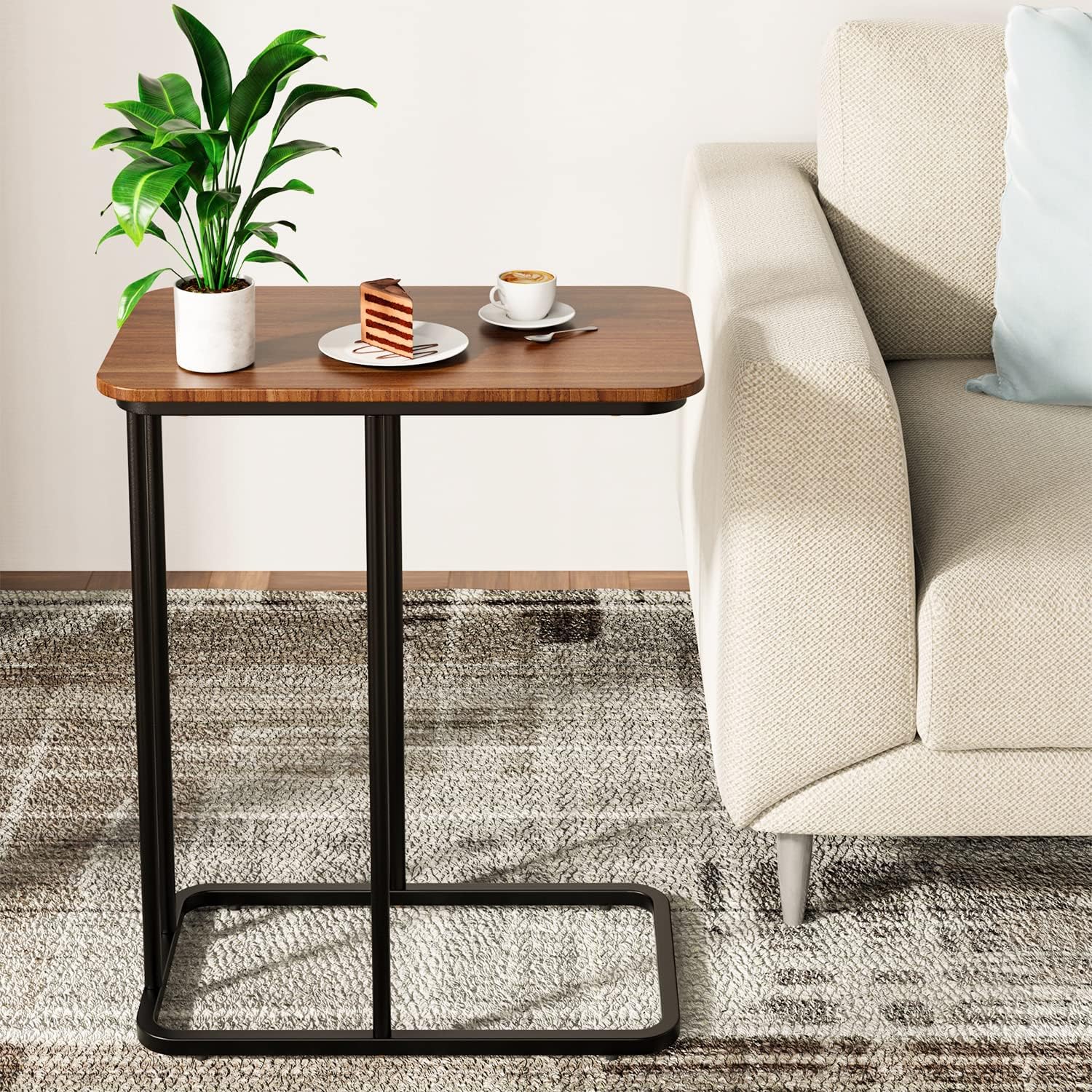 - Waterproof C Shaped Walnut Endtable: Sturdy top with waterproof finished, sofa table has waterproof feature allows you to clean stains easily, side tables with scratch-resistant performance promises better durability. Moreover,the rounded corners on the table top can avoid bump injured, which are safer as well as family-friendly