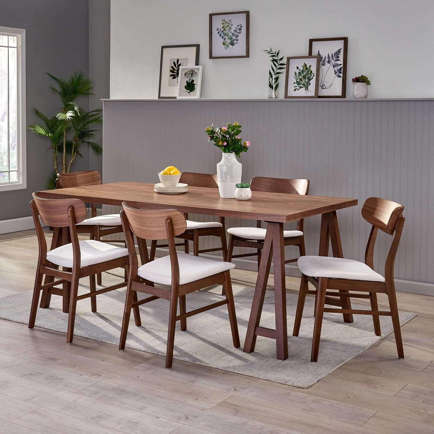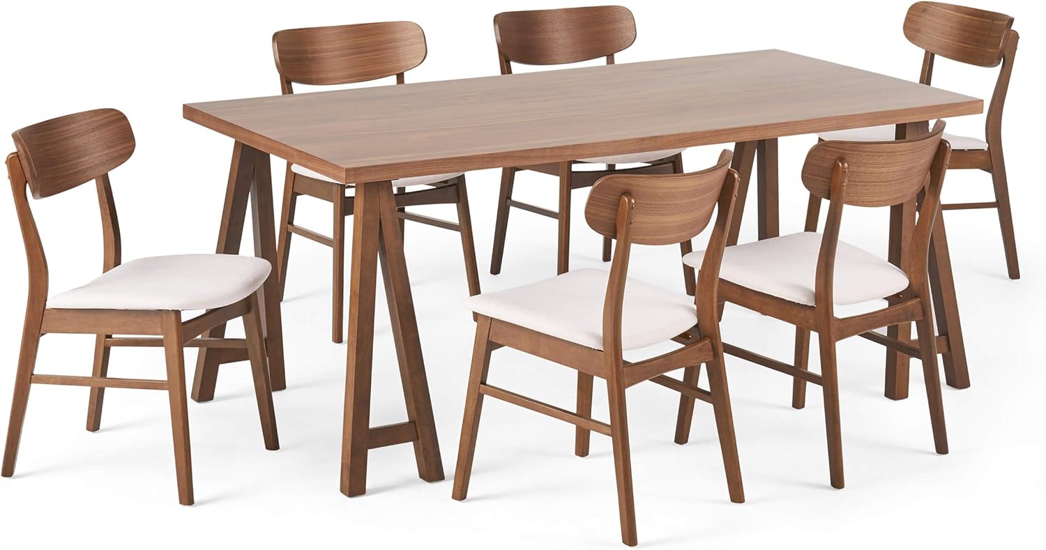 Christopher Knight Home Anthony Mid-Century Modern 7 Piece Dining Set, Light Beige and Walnut