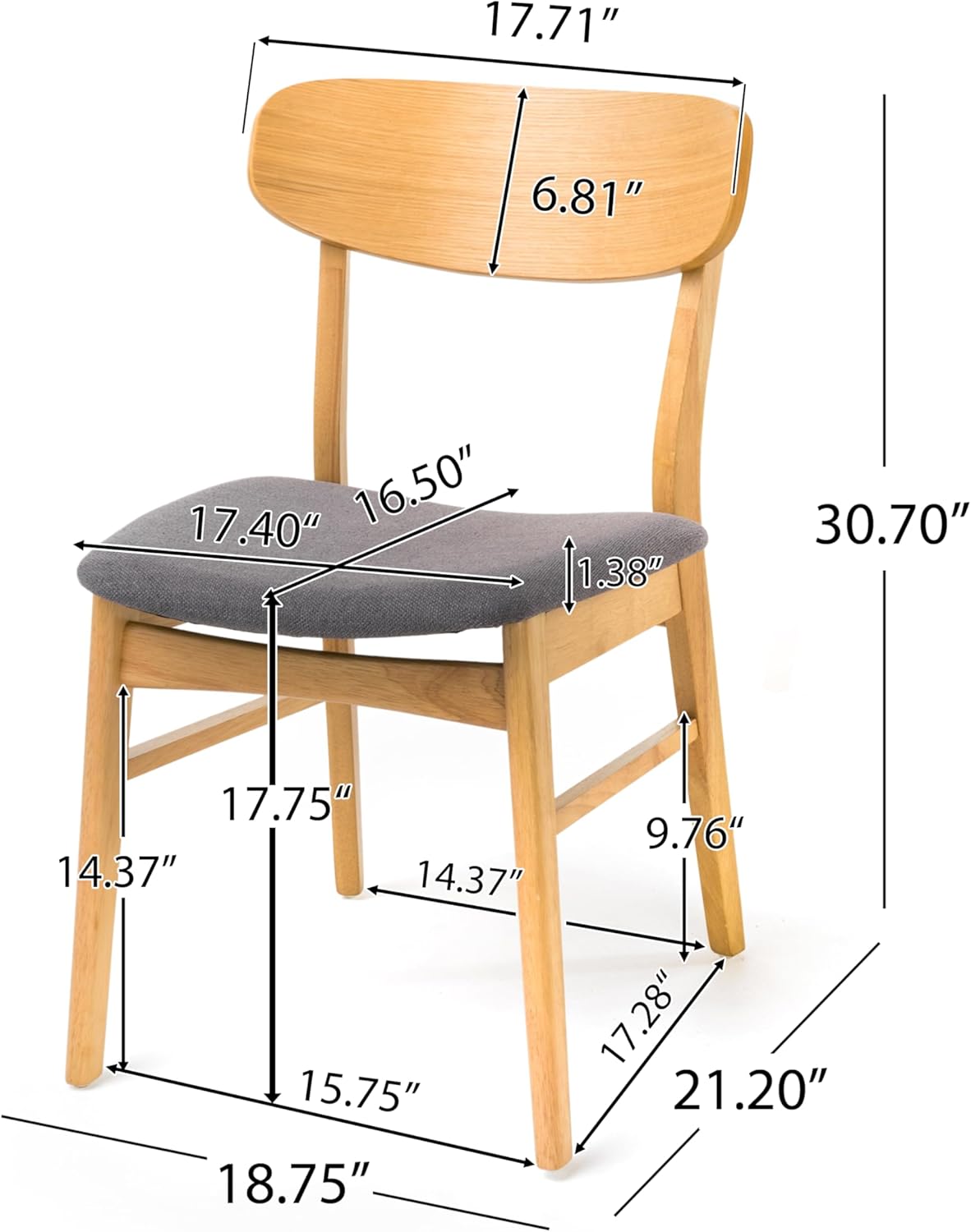 - DIMENSIONS: Choose an accessory that is the perfect size for you and your furniture. Each chair is 18.75" W x 21.20" L x 30.70" H and the dining table is 70.80" W x 35.40" L x 29.50" H. You will love how much your space can transform with the simple addition of this charming dining set. This set comes with six chairs and one table.