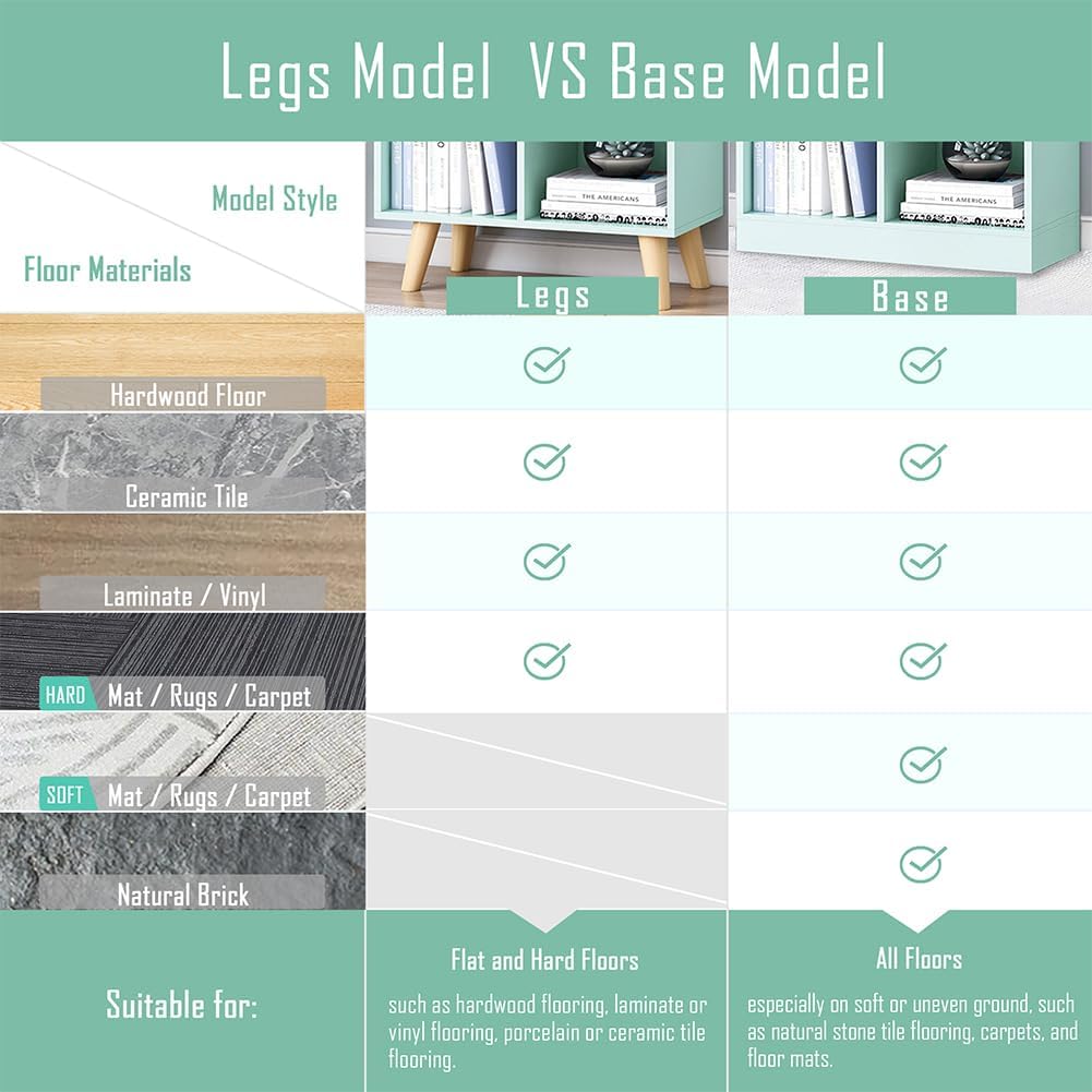 IOTXY Wooden Open Shelf Bookcase - 3-Tier Floorstanding Display Cabinet Rack with Legs, 5 Cubes Free Standing Bookshelf, Tiffany-Green