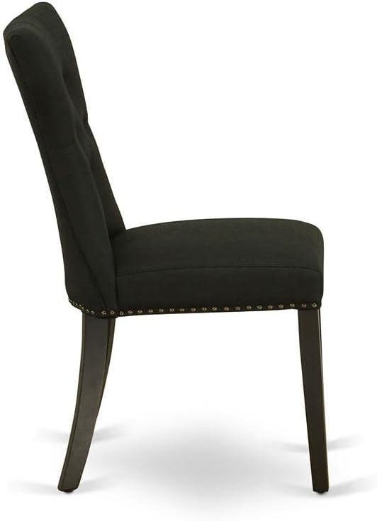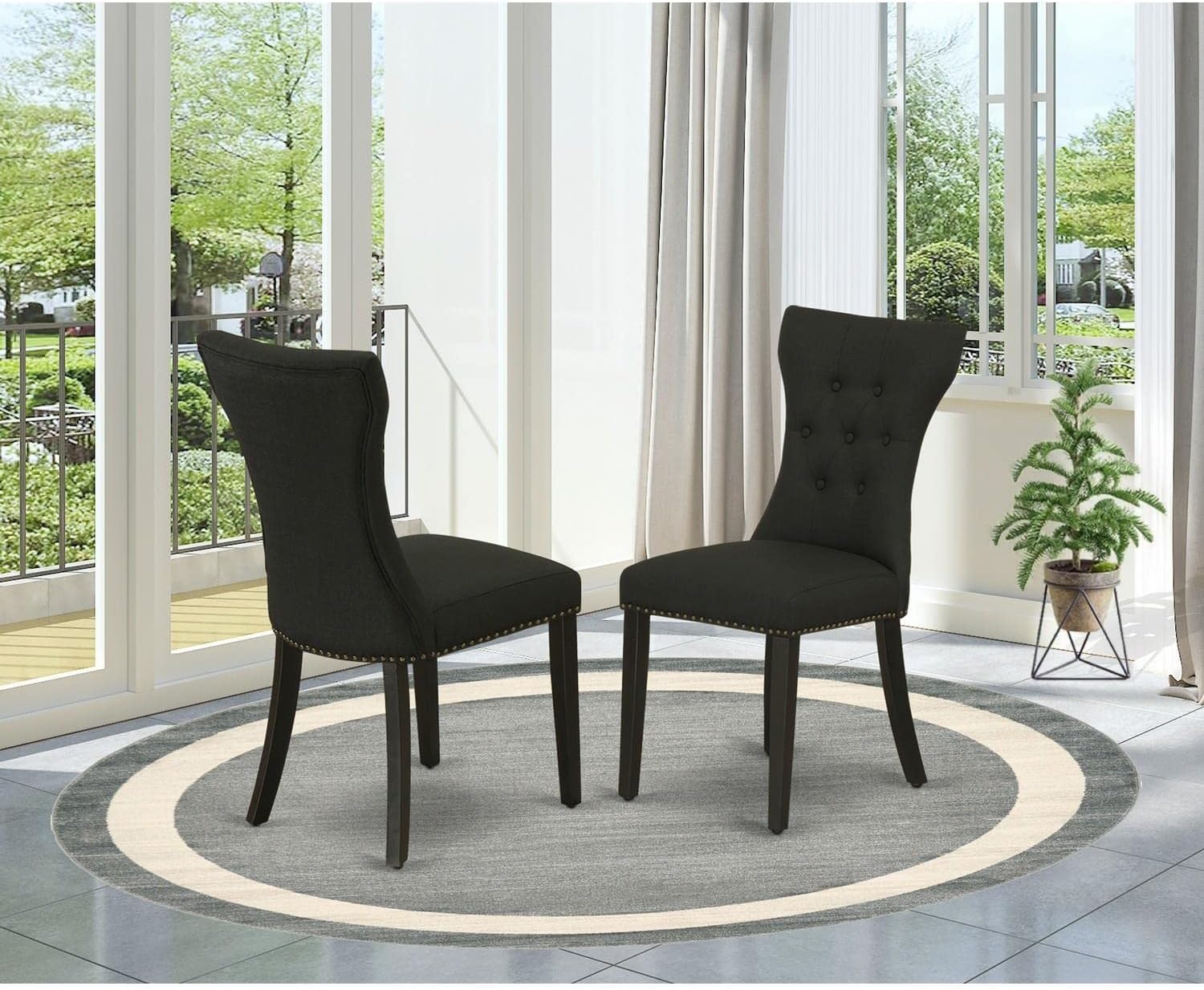 East West Furniture GAP1T24 Gallatin Parsons Dining Chairs - Button Tufted Nailhead Trim Black Linen Fabric Upholstered Chairs, Set of 2, Black