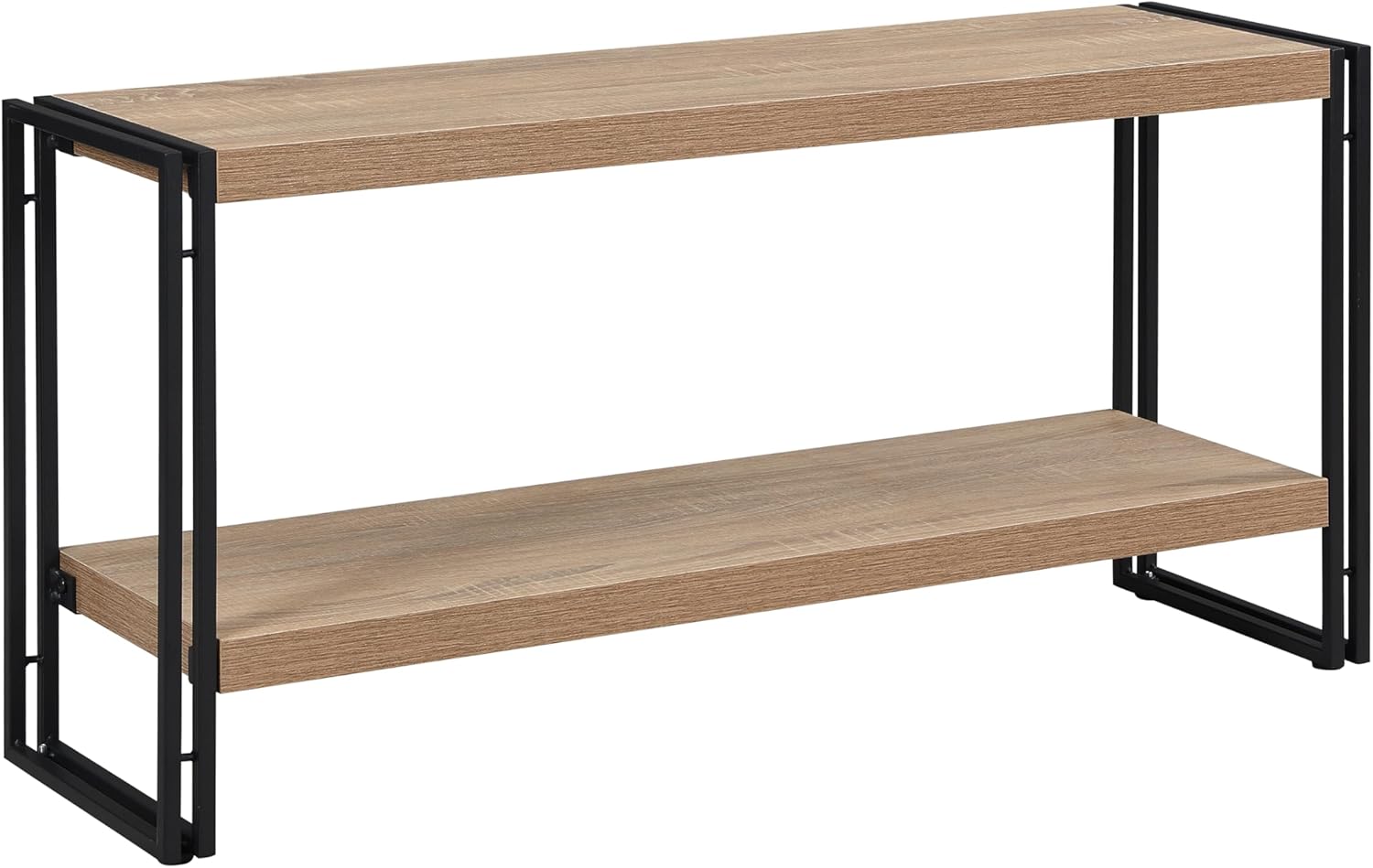 - [Rustic Industrial Style]: Unique double-tube metal frame and wooden (not solid wood) boards with textured oak grain veneering make this horizontal bookshelf easily fit in any farmhouse decor.