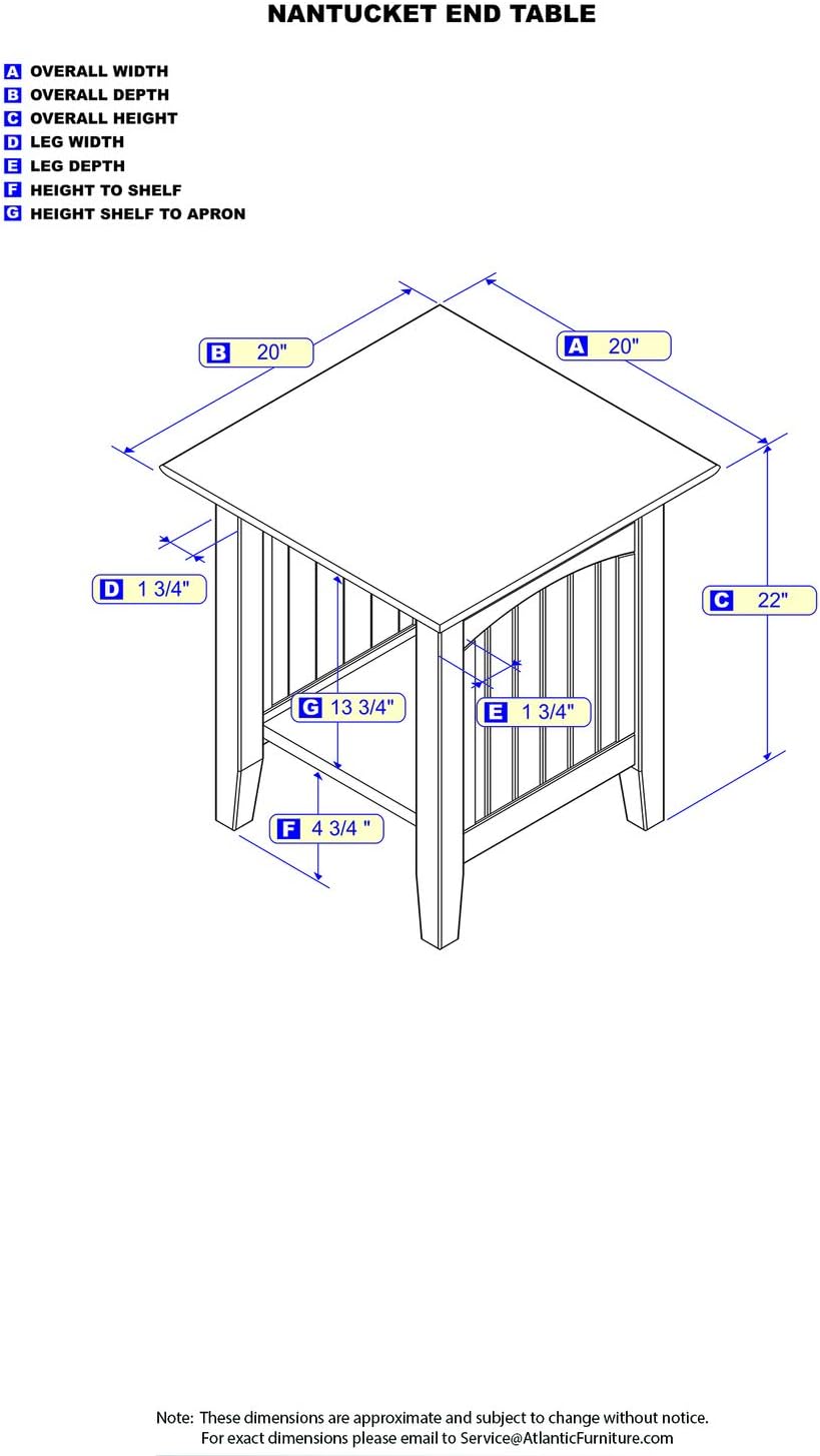 - ASSEMBLED DIMENSIONS: 20”L x 20”W x 22”H