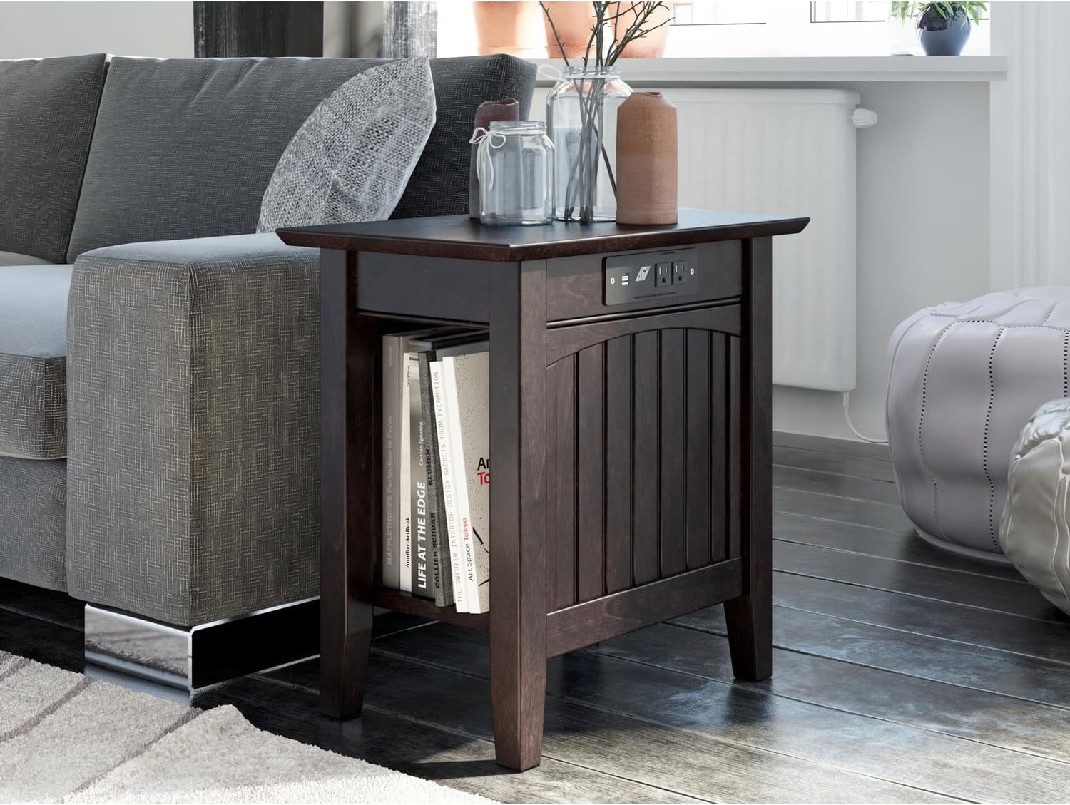 AFI Nantucket Chair Side Table with Built-in Charger in Espresso