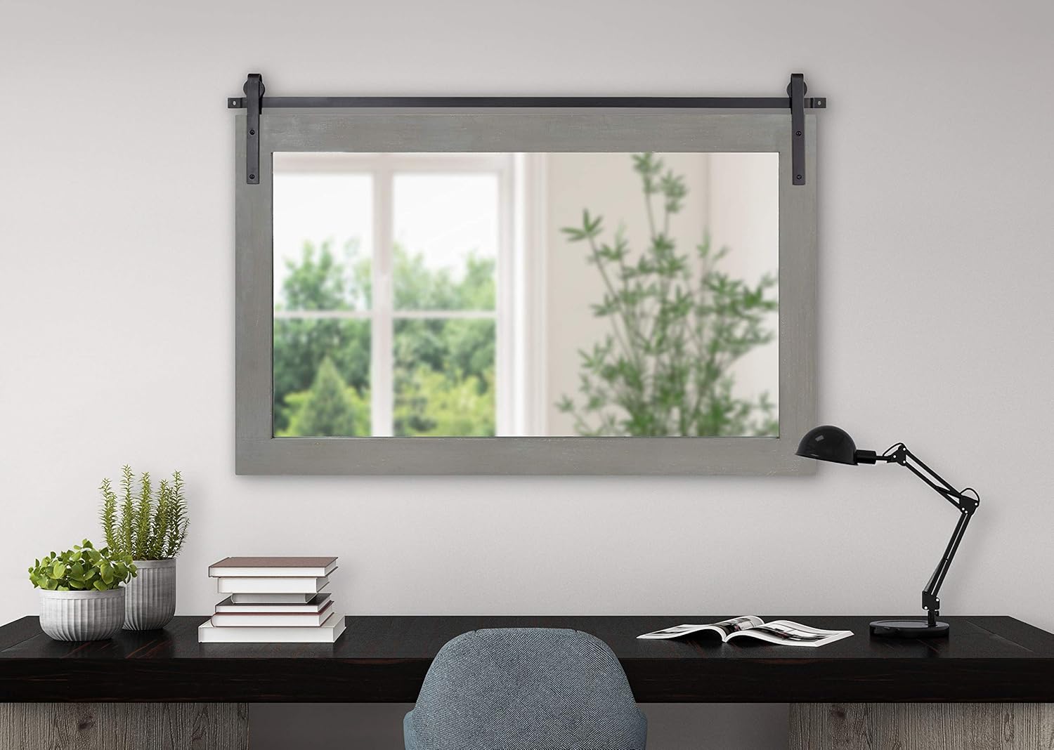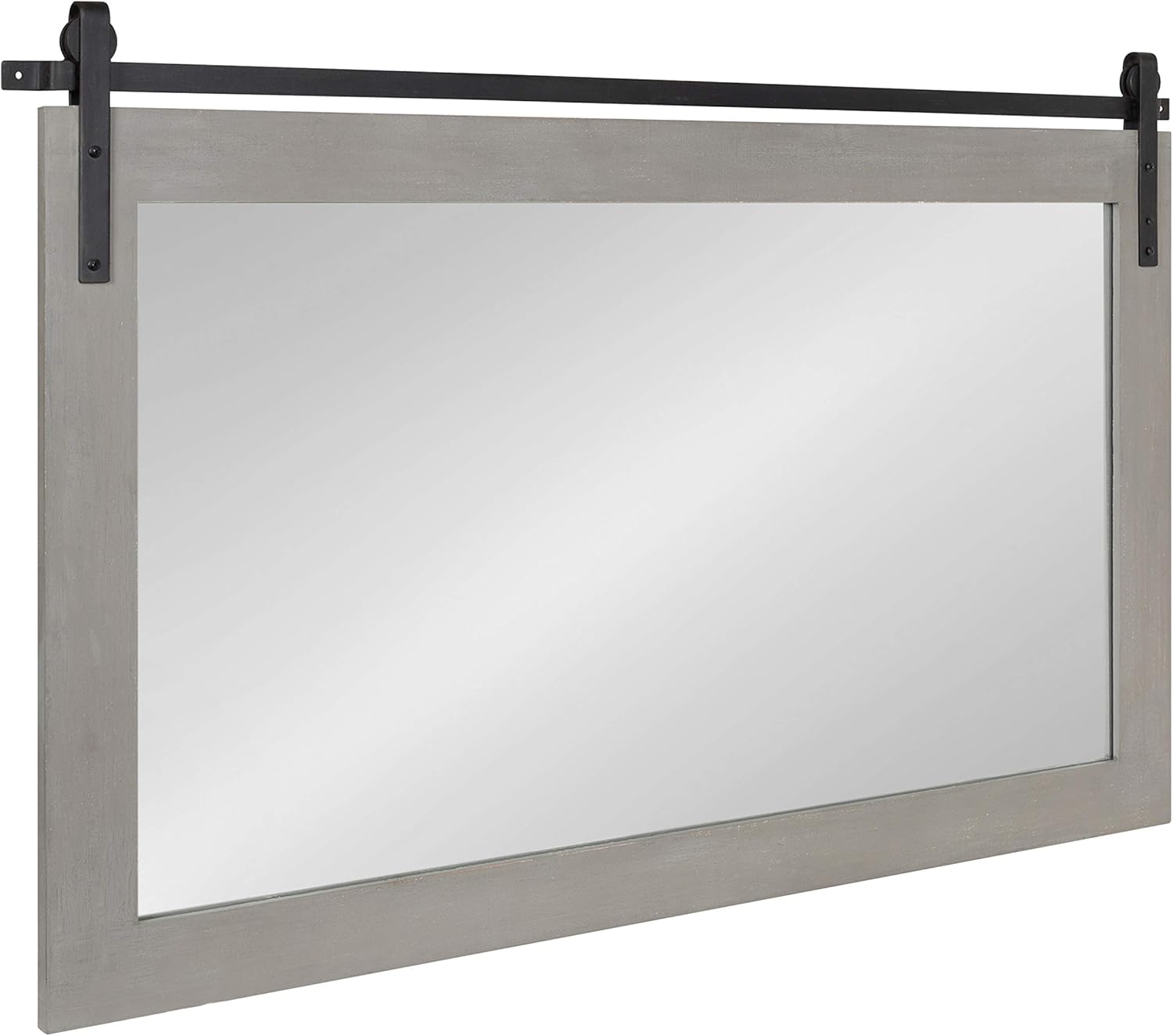 Kate and Laurel Cates Farmhouse Horizontal Wood Framed Wall Mirror, 40 x 26, Gray, Barn Door-Inspired Rustic Mirrors for Wall