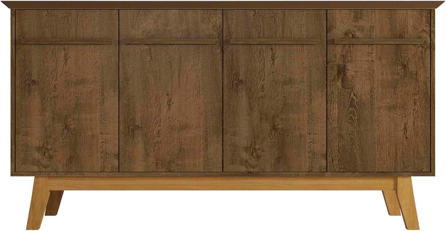 Manhattan Comfort Yonkers 63 Inch Buffet Sideboard with 2 Cabinets & Soft Close Doors, Storage Furniture with Stylish Beveled Top, Solid Wood Legs, Rustic Brown