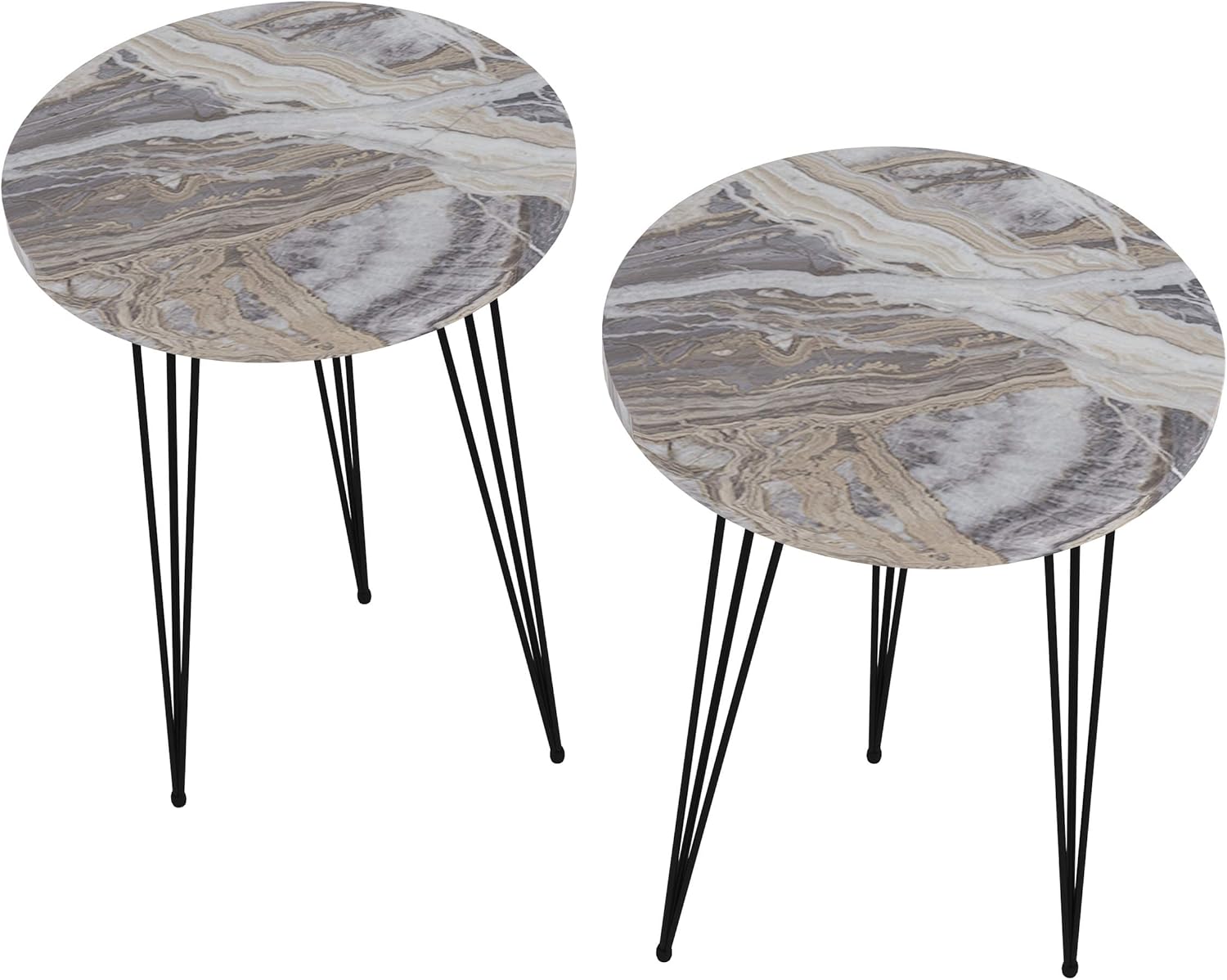 PAK HOME Set of 2 End Tables Round Wood Sofa Side Coffee Tables for Small Spaces, Nightstand Bedside Table with Metal Legs for Bedroom, Living Room, Office, Balcony (Grey Marble)