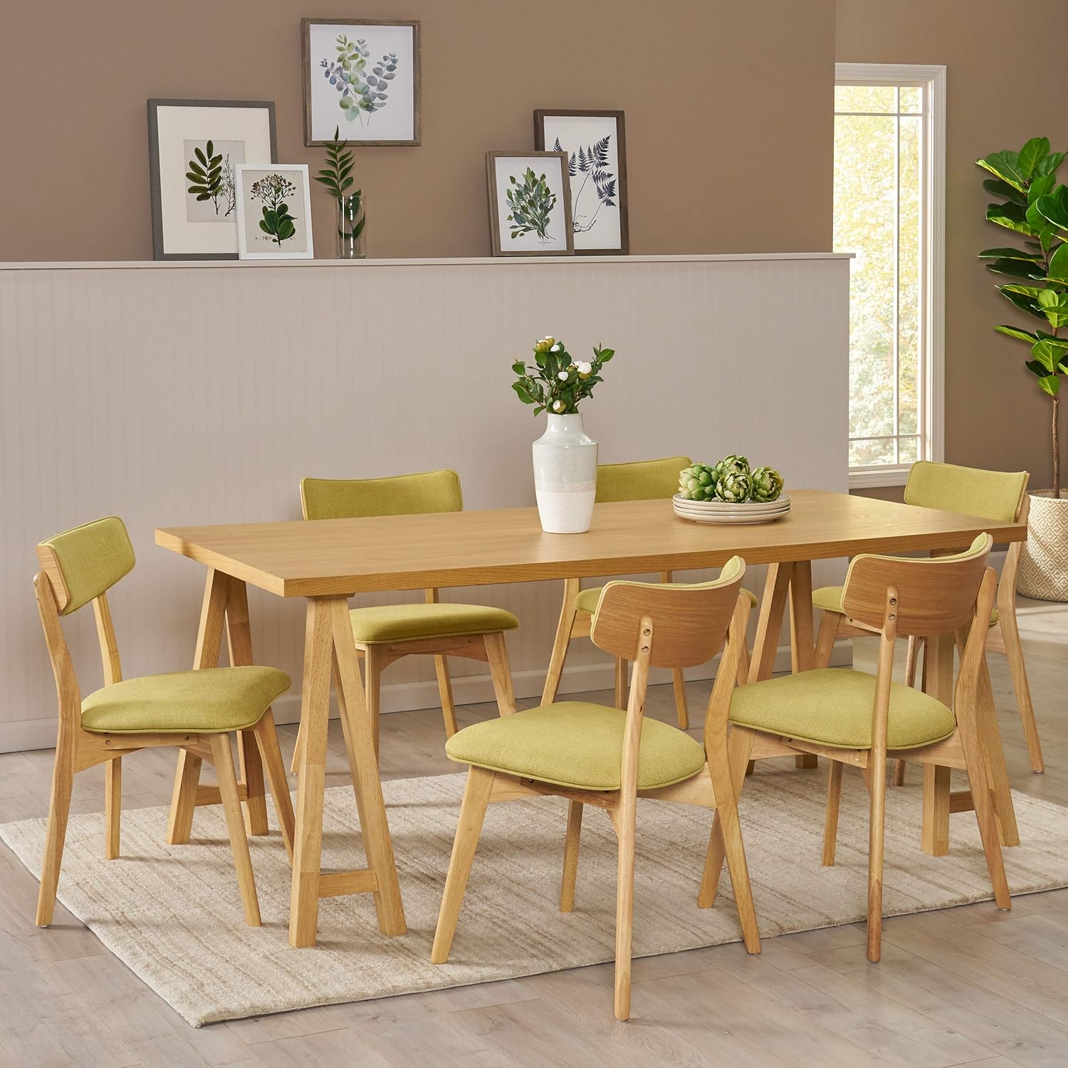 Christopher Knight Home Rachel Mid-Century Modern 7 Piece Dining Set with A-Frame Table, Green Tea + Natural Oak