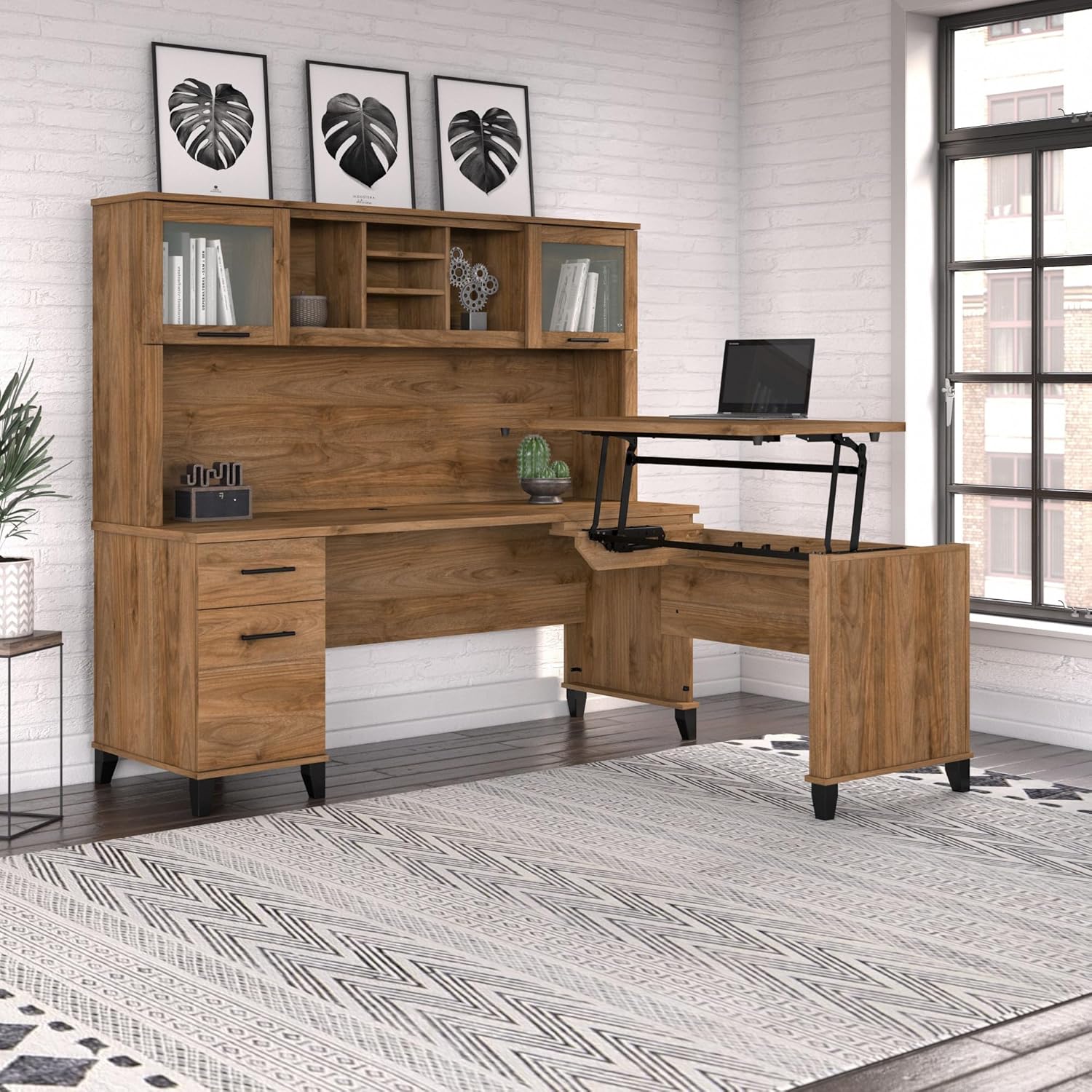- BEST OF BOTH WORLDS: Upgrade your home office with the Somerset 3 Position Sit to Stand L Shaped Desk with Hutch. A large fixed work surface with an adjustable return gives you the freedom to change positions throughout the day.