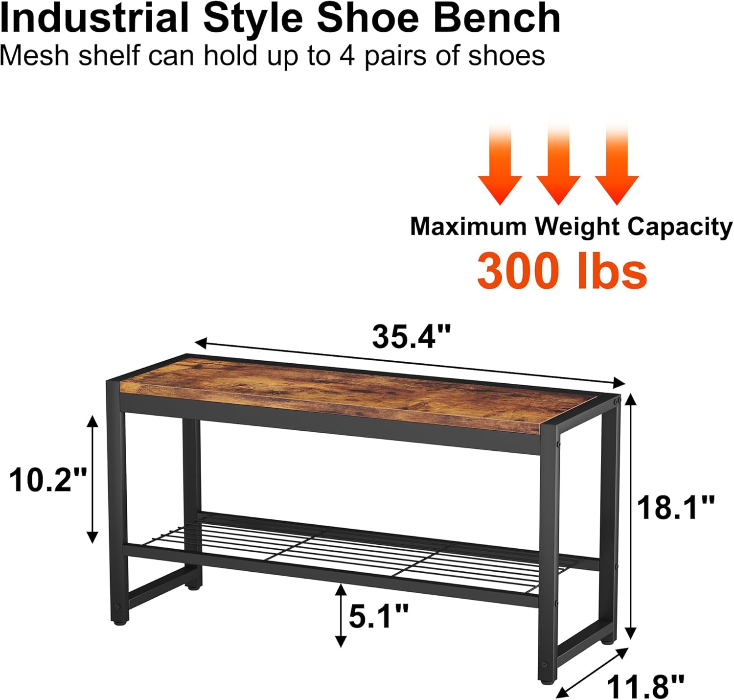 - A BEAUTIFUL PIECE OF FURNITURE: An excellent combination of industrial and natural design, a great blend of form and function. This 2-tier shoe bench is attractive and minimalistic. A shoe bench is always the first thing you see when walking into the house, so appearance is of great importance. The top grain looks natural. It is perfect for placing inside the doorway.