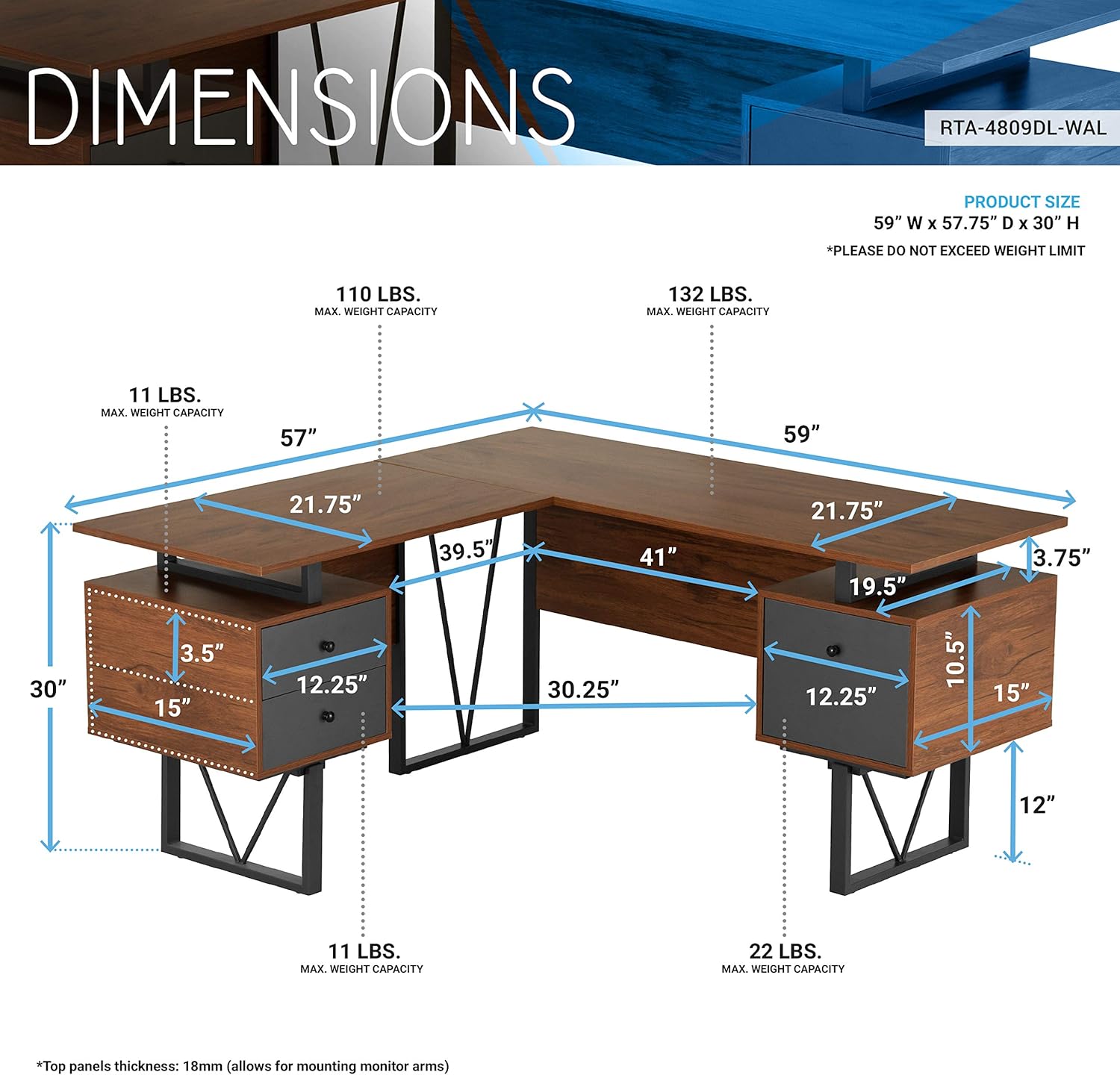 - Desktop, storage drawers and file cabinet can be assembled left or right side