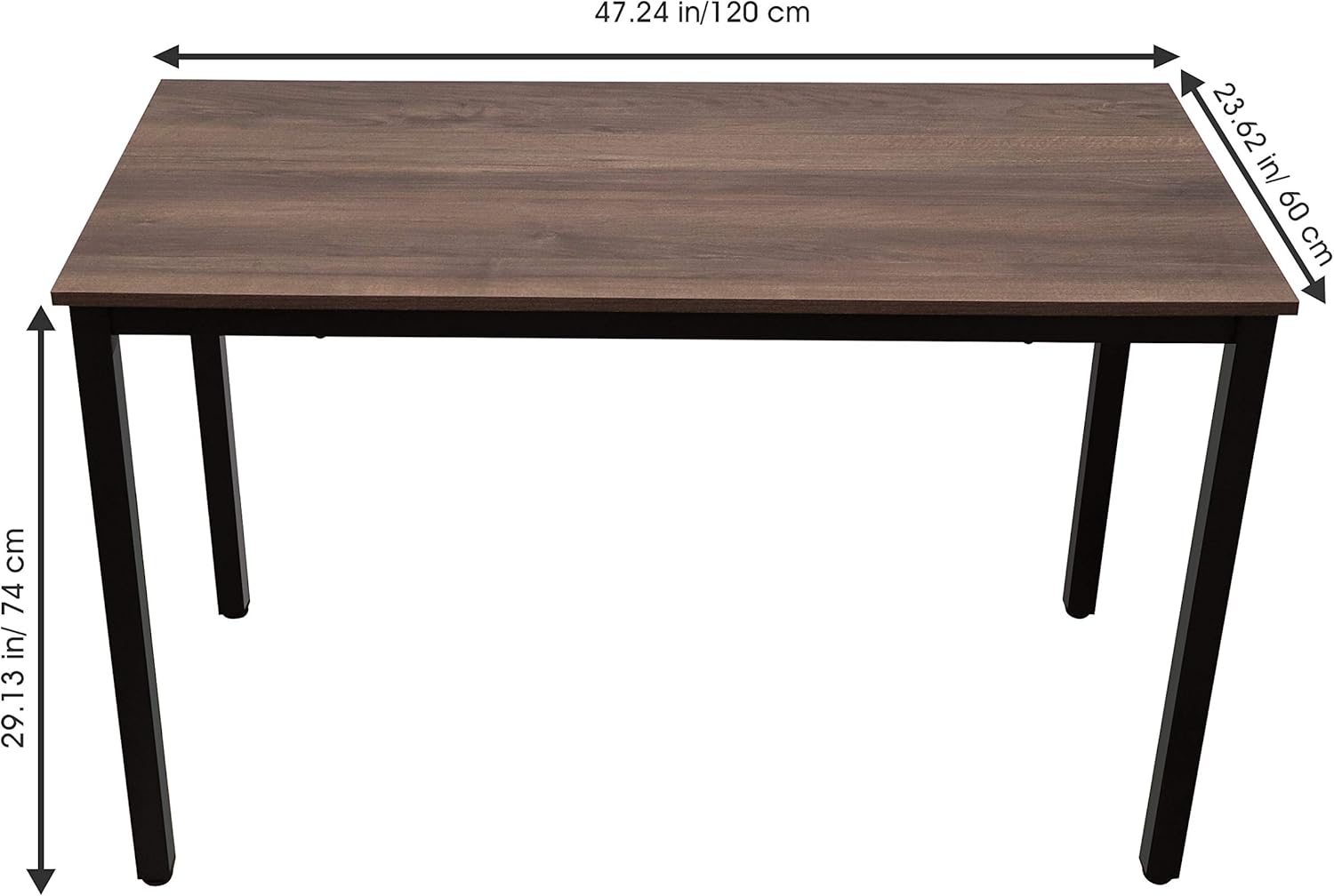47 inch Large Computer Desk Wood, Modern Simple Style Desk for Home Office, Bedroom, Study Student Writing Desk, Small Spaces, Black Metal Frame, Walnut Top