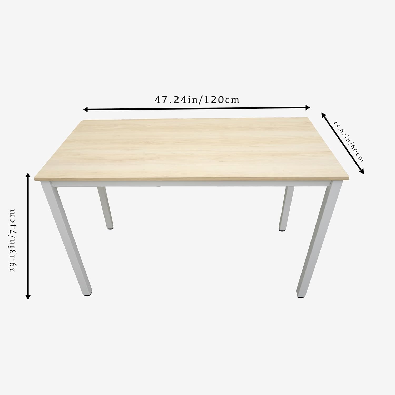 47 inch Large Computer Desk Wood, Modern Simple Style Desk for Home Office, Bedroom, Study Student Writing Desk, Small Spaces, White Metal Frame, Apple Wood Grain Top