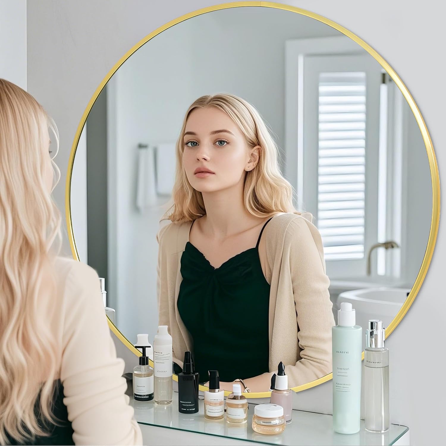 - Modern Brushed Frame Design: 30-inch gold circle mirror is crafted of an aluminum alloy metal sleek frame, making it ideal for bathroom mirror, entrance mirror, vanity mirror, living room mirror