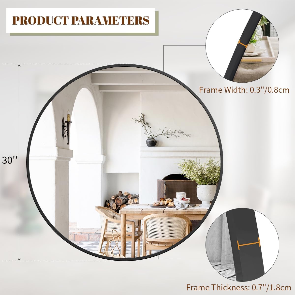 - Worry-free purchase: we have reinforced the packaging of the mirror to ensure safe delivery. If you find that the round mirror is broken on arrival, please contact us, we will deal with it for you at the first time