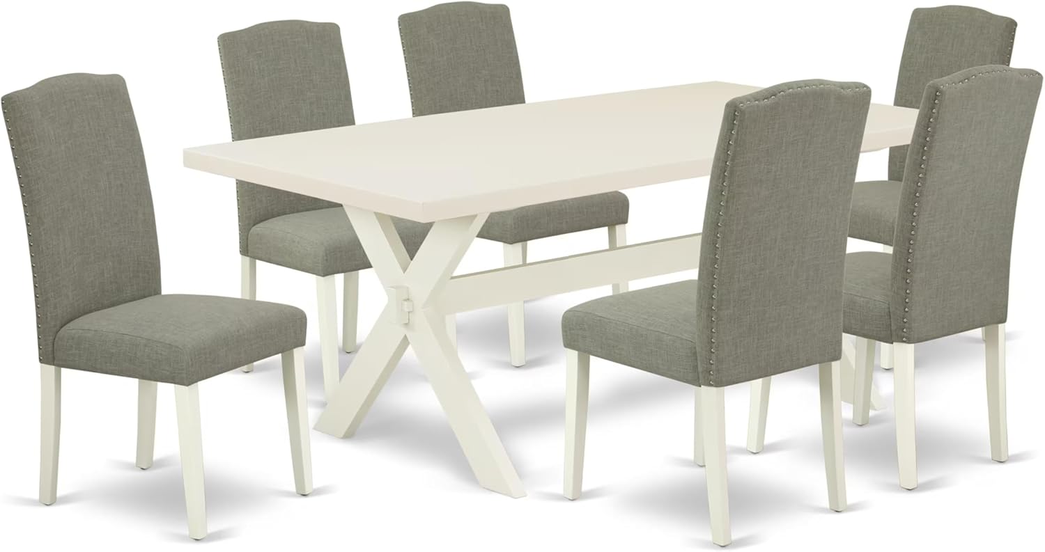 East West Furniture X027EN206-7 7 Piece Dining Room Furniture Set Consist of a Rectangle Dining Table with X-Legs and 6 Dark Shitake Linen Fabric Parsons Chairs, 40x72 Inch, Multi-Color