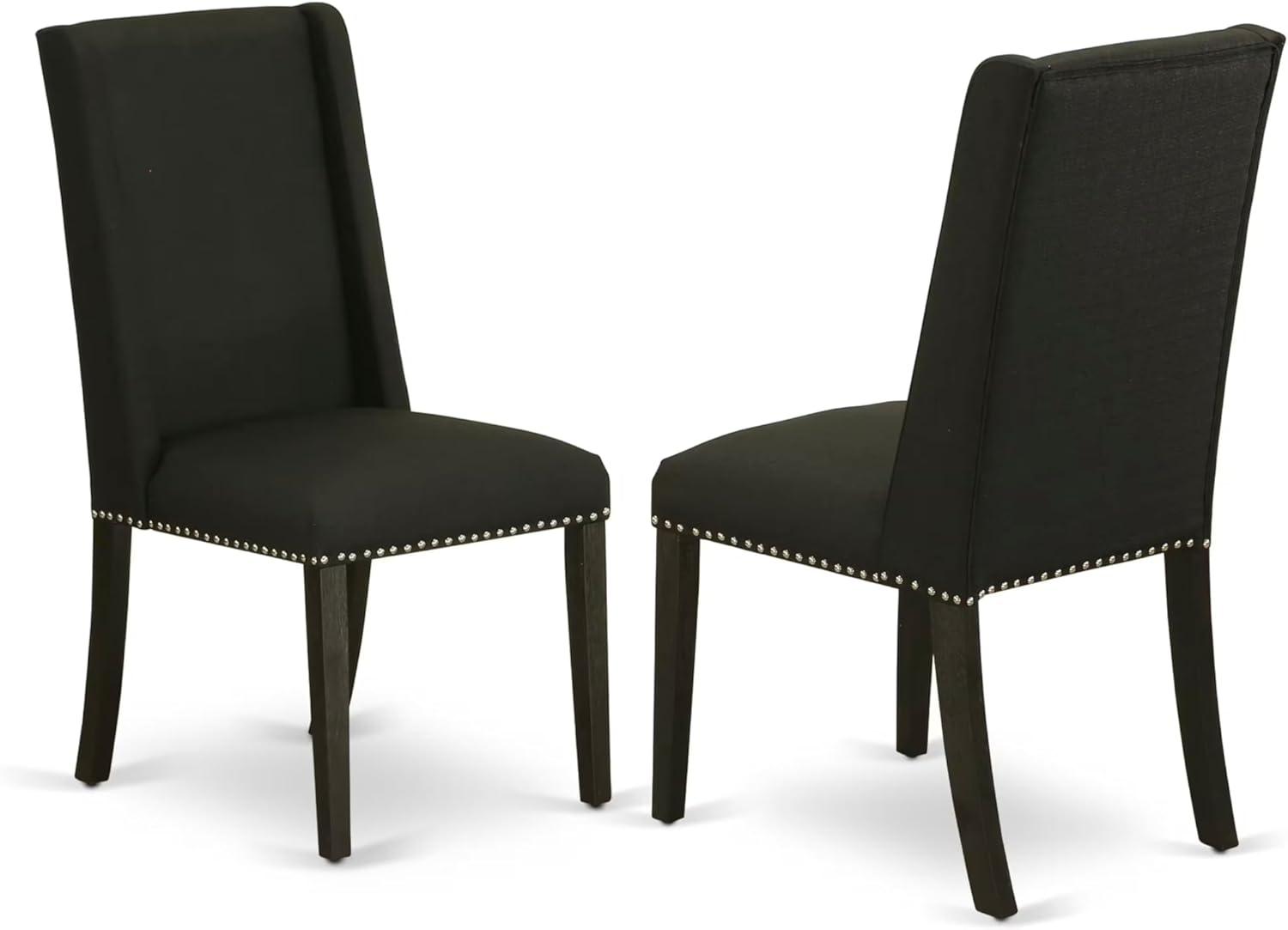 East West Furniture V677FL624-7 7 Piece Dinette Set Consist of a Rectangle Dining Room Table with V-Legs and 6 Black Linen Fabric Upholstered Parson Chairs, 40x72 Inch, Multi-Color