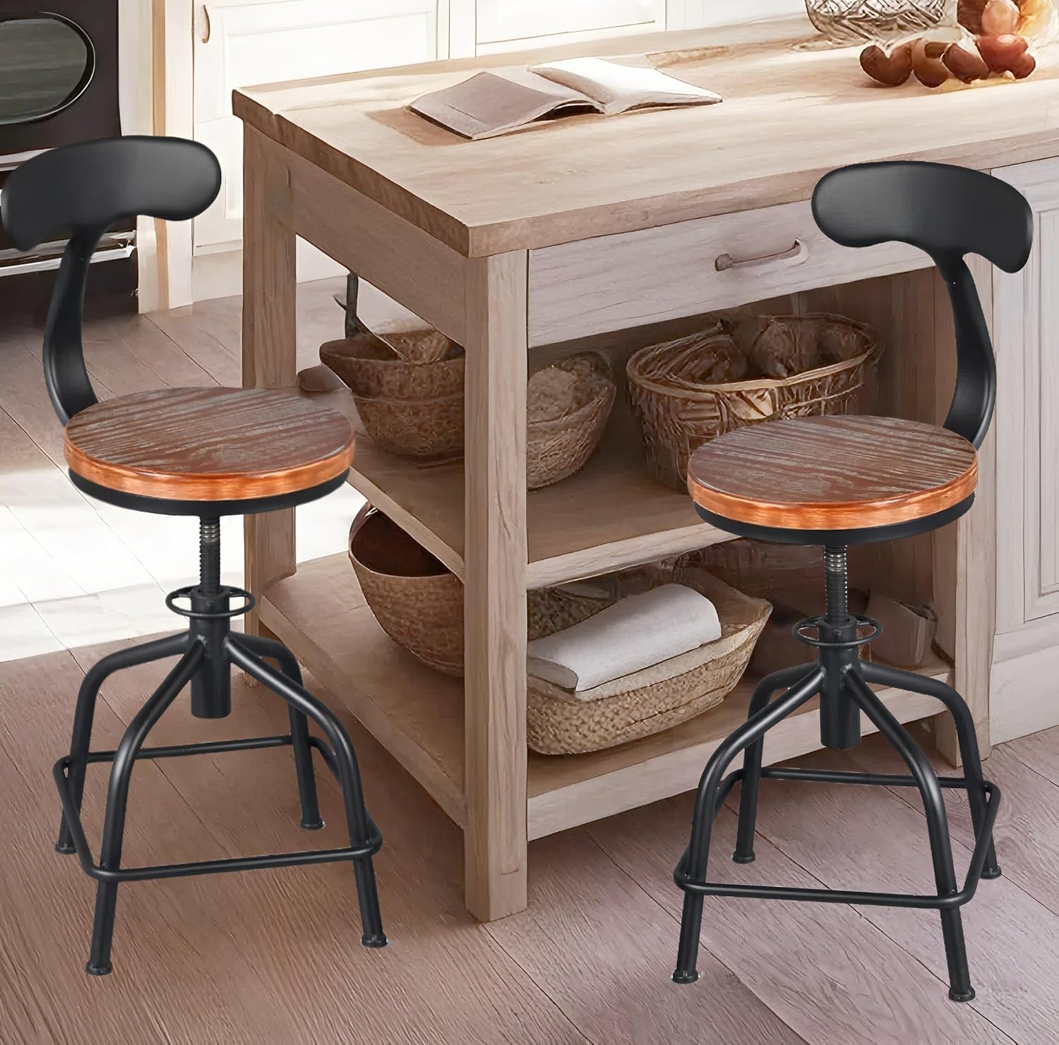 Topower Farmhouse Kitchen Stool, Industrial Counter Stool, Kitchen Deco Round Seat Standard Height Adjustable Swivel Bar Stools with Backrest Indoor House Design Iron Backrest Black Set of 2