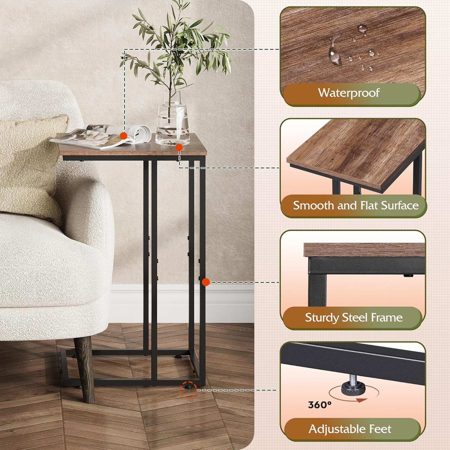 - 【Adjustable Plastic Feet】With 4 height adjustable plastic feet, this c table can be used on uneven floors or carpets, increasing the stability of the side table, the plastic material prevents the floor from being scratched.