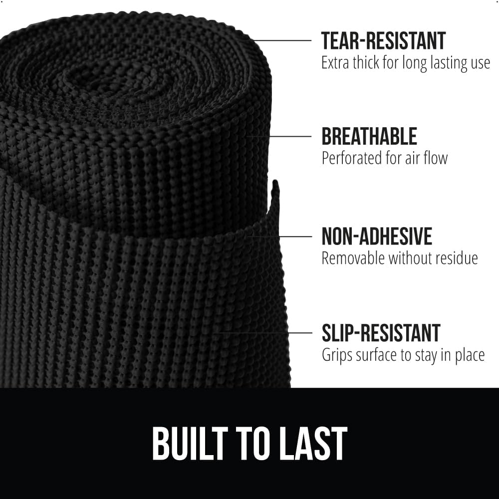 - EXTRA STRONG GRIP NON-ADHESIVE LINER: the Gorilla Grip powerGRIP liner is a non adhesive and tear resistant liner engineered with the highest quality materials to reduce slipping and bunching in your drawers or cabinet shelves; superior gripping technology keeps both the liner in place on surfaces
