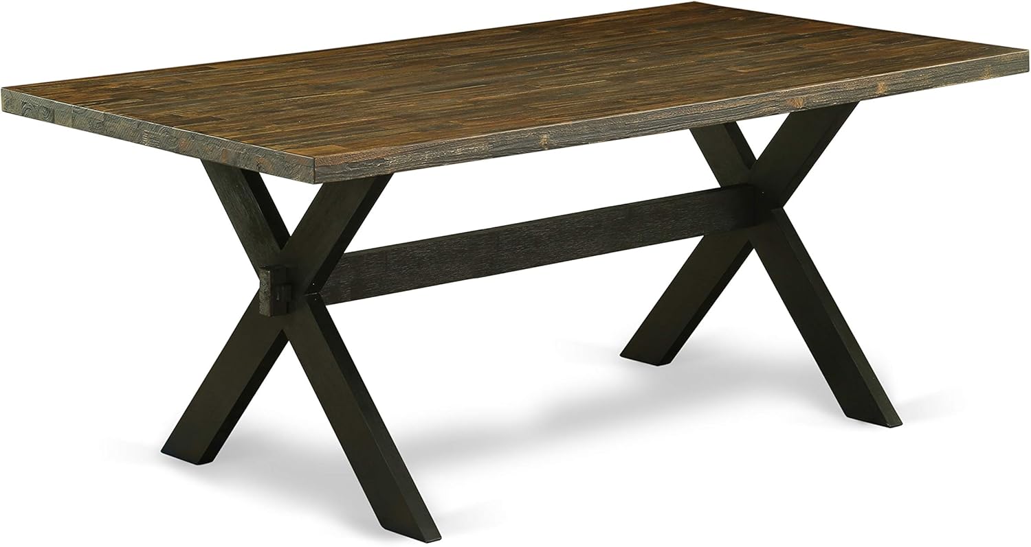 - DINING ROOM TABLE SET FINISH: This dining room set showcases a Distressed Jacobean hardwood wood table top supported by Wire Brushed Black-finished table X legs. The kitchen parson chair seats and Stylish Chair Back are tastefully upholstered in luxurious Doeskin Linen Fabric, imparting an aura of sophistication to your dining area and elevating the aesthetic charm of your exceptional dining space.