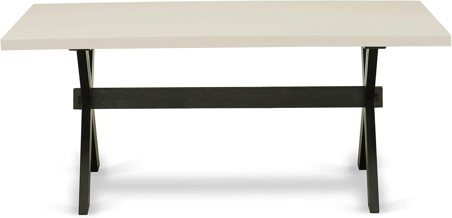 - DNIING TABLE SET FINISH: The kitchen set boasts a Linen White hardwood rectangular table top, accompanied by dining table X legs in a Wire Brushed Black finish. The dining chairs feature exquisite Black Linen Fabric seats and an elegant chair back design, imparting a sense of refinement to your kitchen and elevating the overall beauty of your dining room.